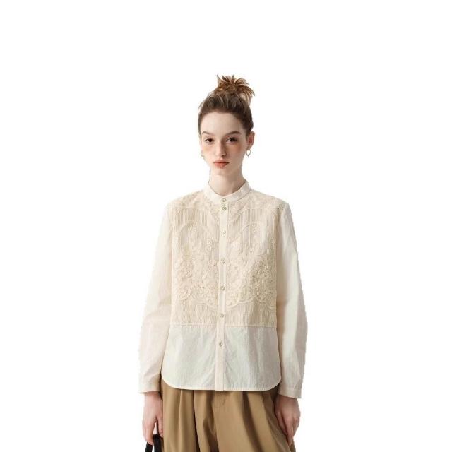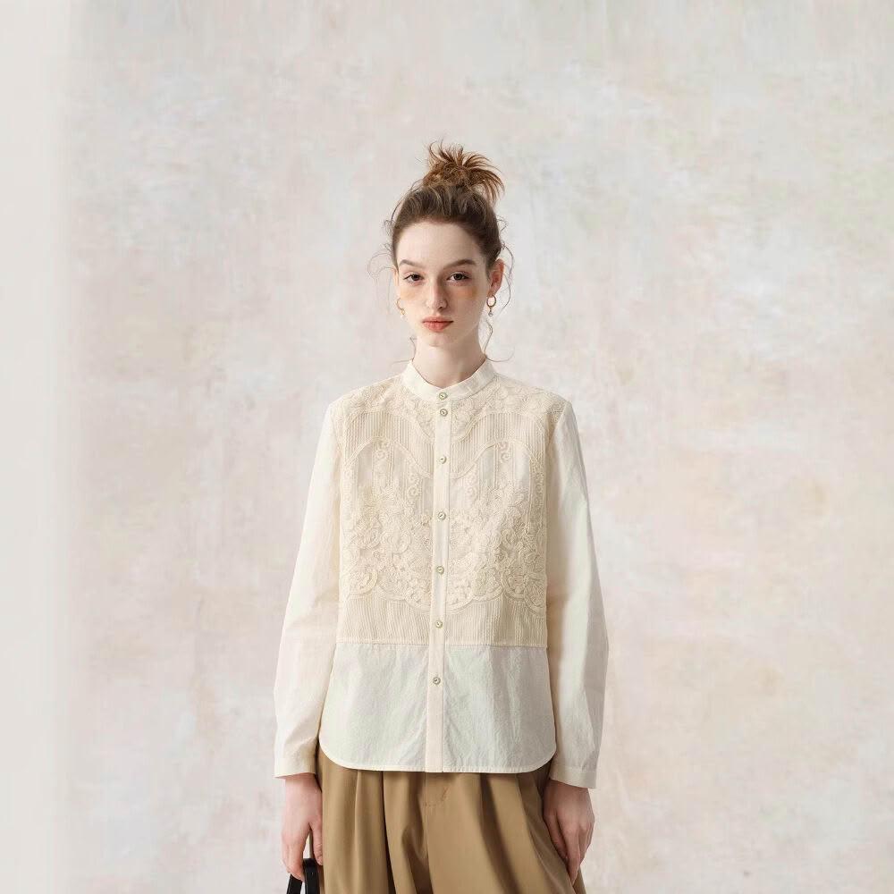 2025刺繡新中式襯衫女設計感2025早春新款國風襯衣純棉長袖上衣