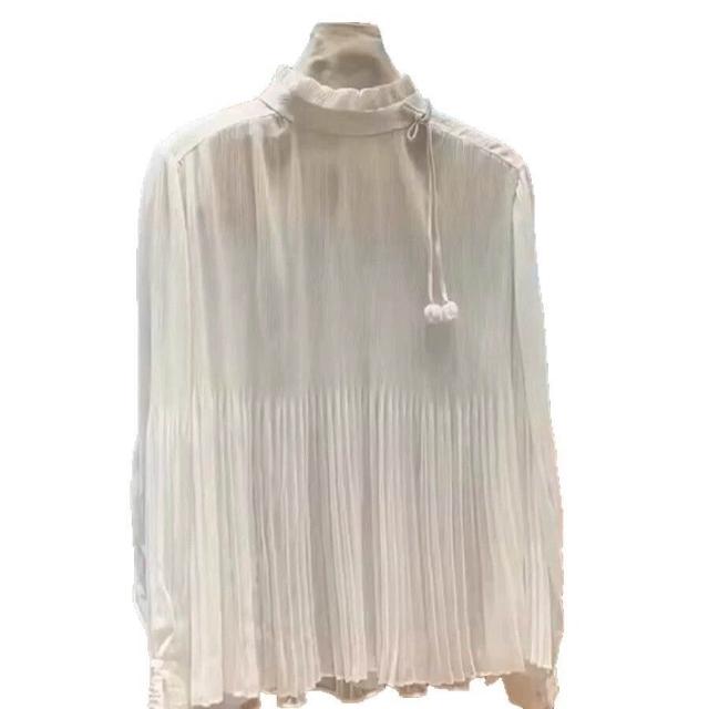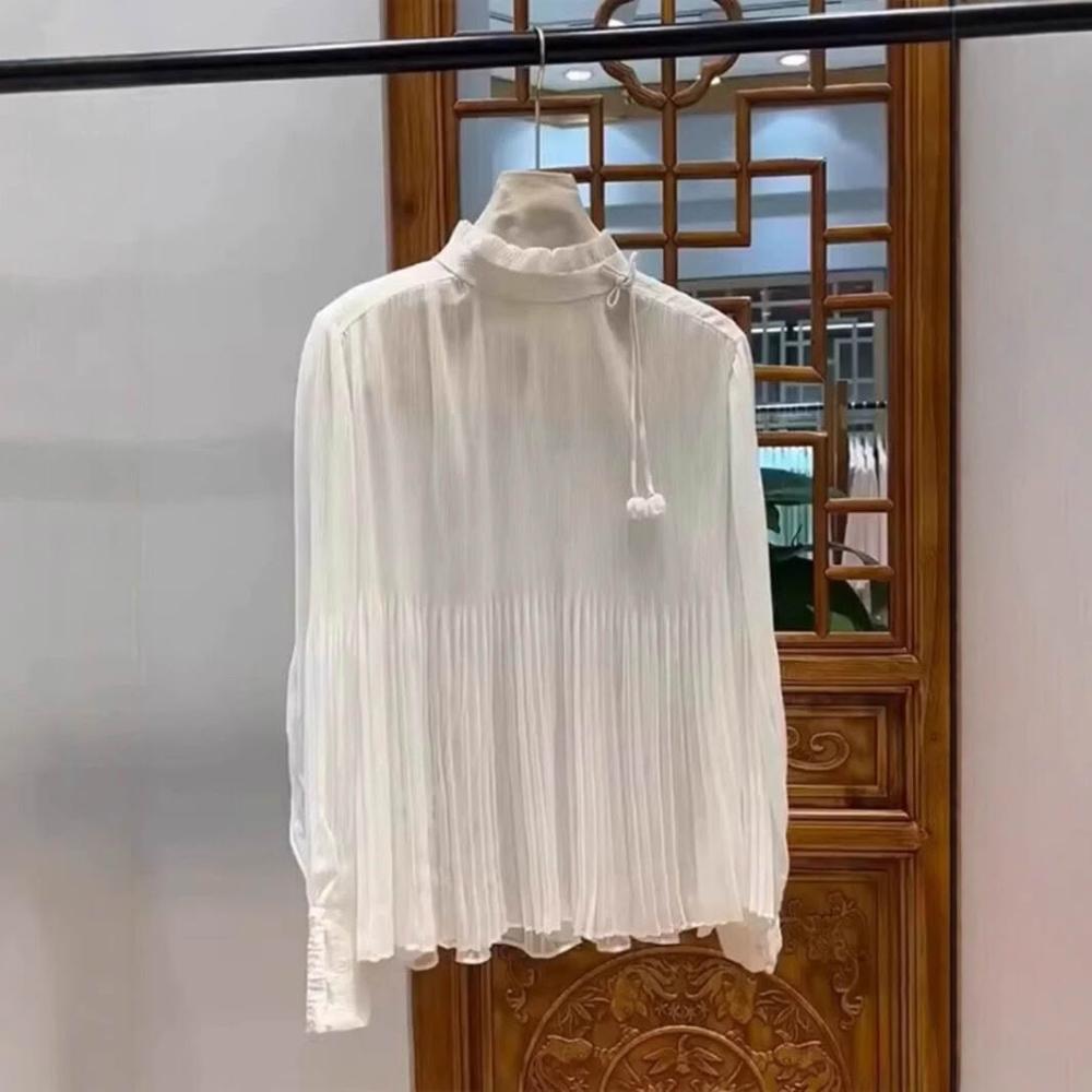 法式高級感白色半高領襯衫女夏季新款小眾設計感修身顯瘦氣質上衣