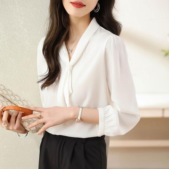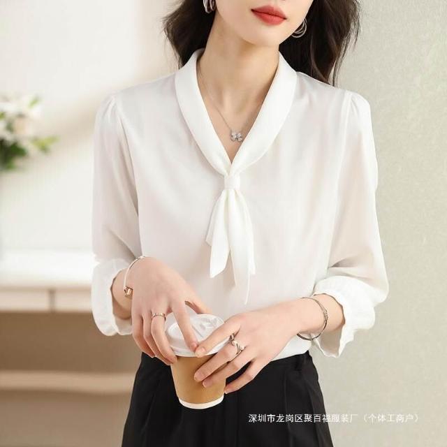 品牌真絲襯衫女長袖夏季2025新款高級感白色時尚洋氣職業正裝襯衣