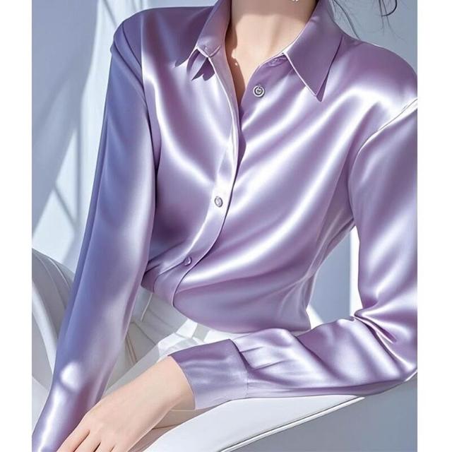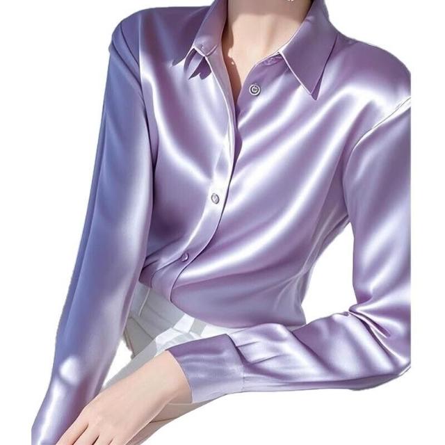 法式高級感紫色襯衫女春季職業通勤高端輕奢時尚洋氣減齡緞面上衣