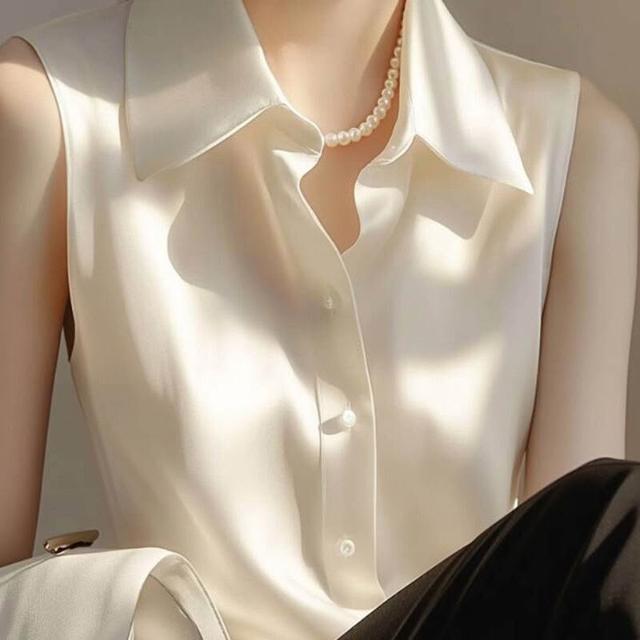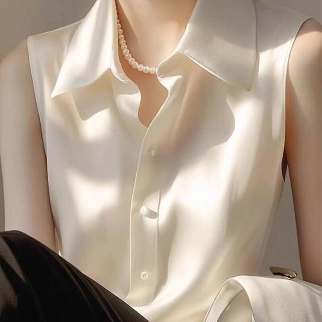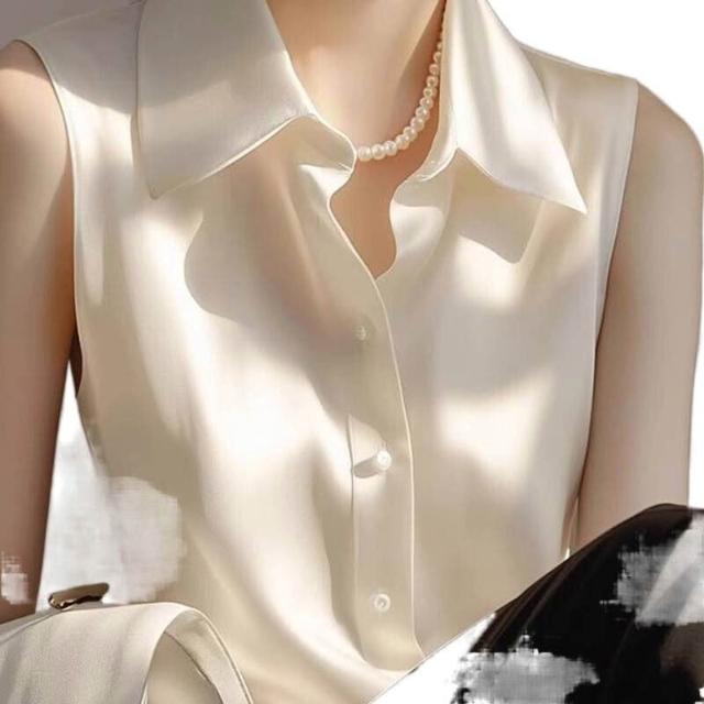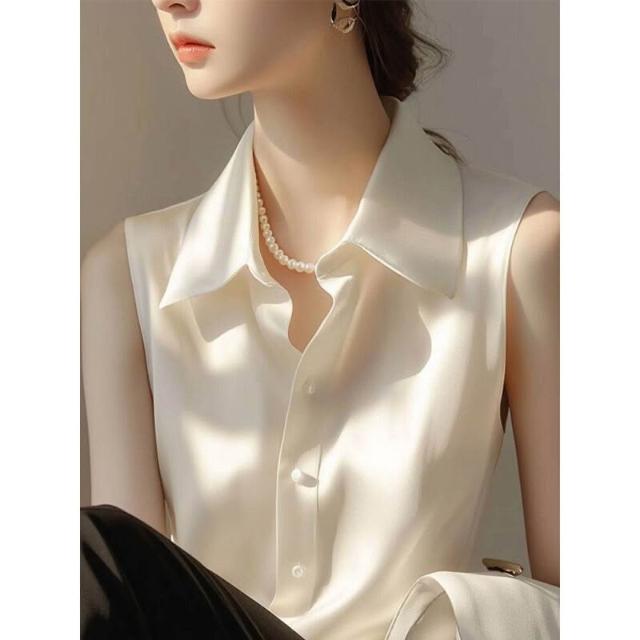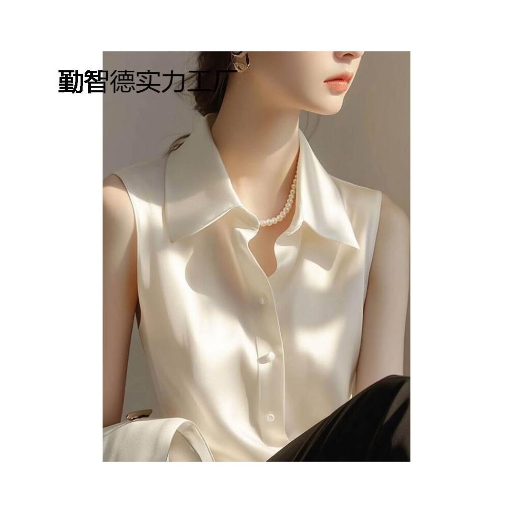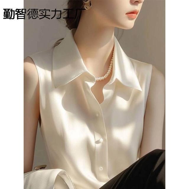 2025新款內搭打底衫疊穿上衣白色緞面無袖襯衫女款夏季