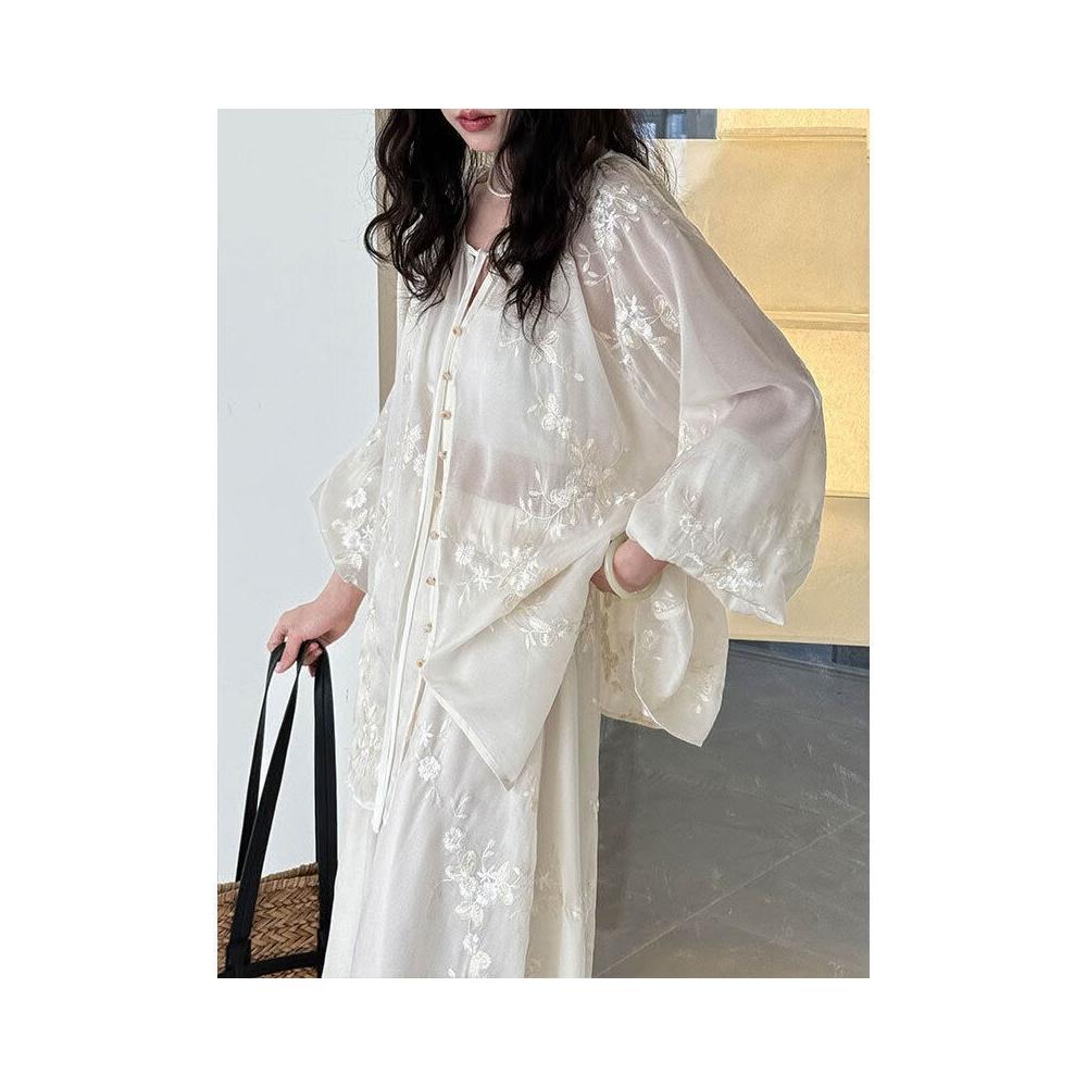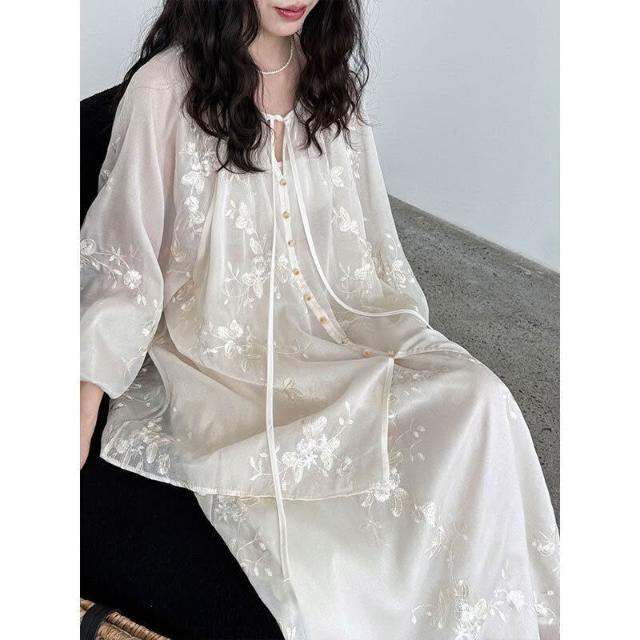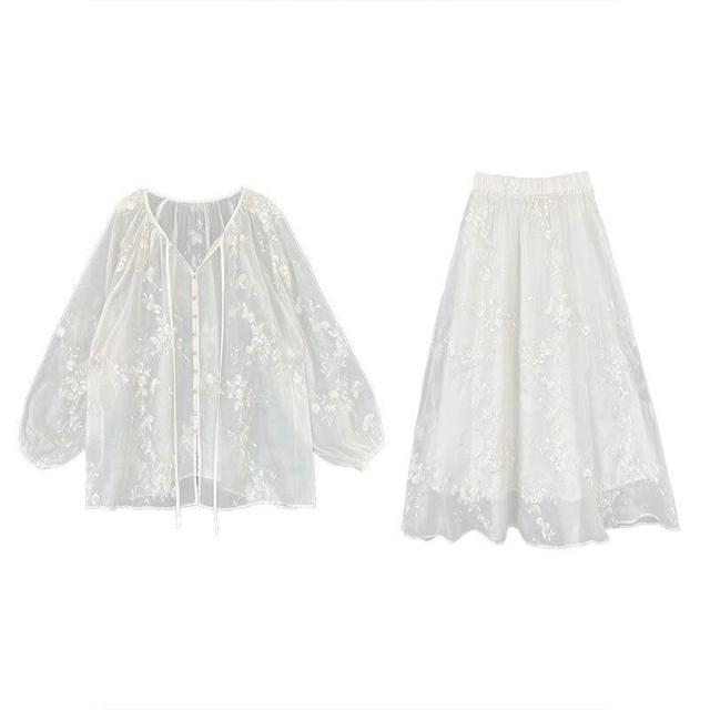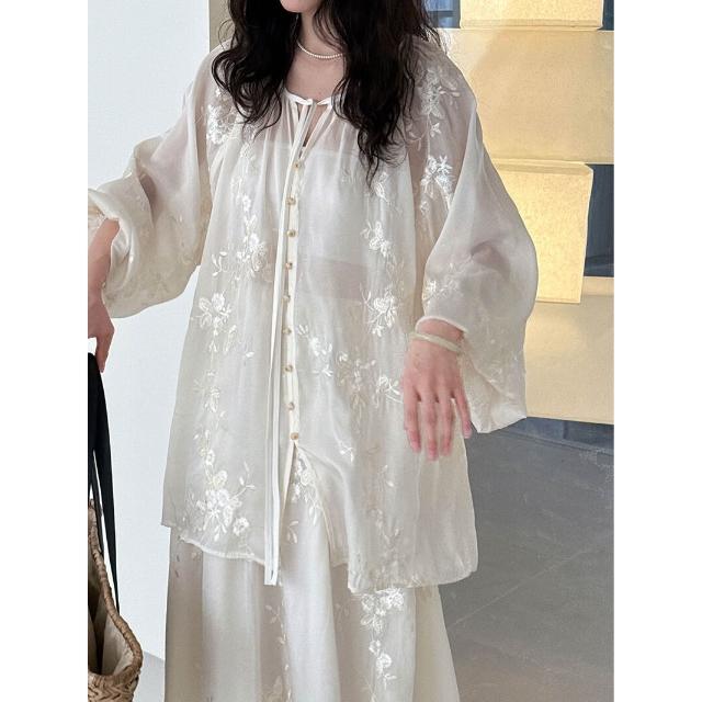 刺繡~新中式國風刺繡襯衫半裙套裝女夏季新款重工防曬兩件套5114