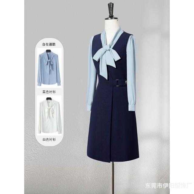 職業連衣裙女春秋襯衫馬甲裙兩件套時尚氣質園服幼兒園老師