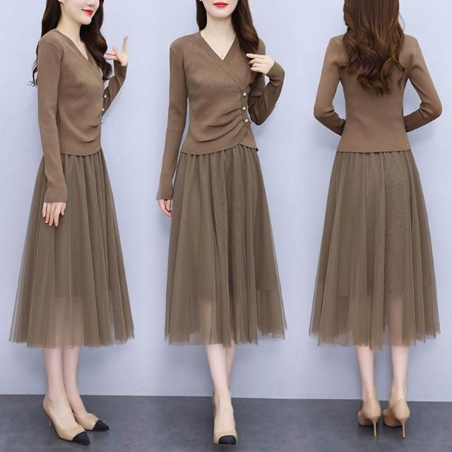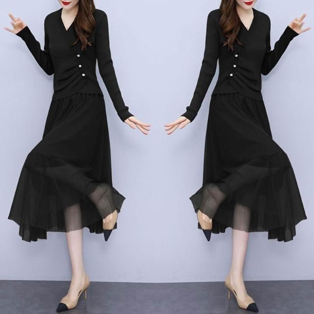 新款女裝洋氣減齡女感兩件套連衣裙秋季裙子2025氣質套裝長袖