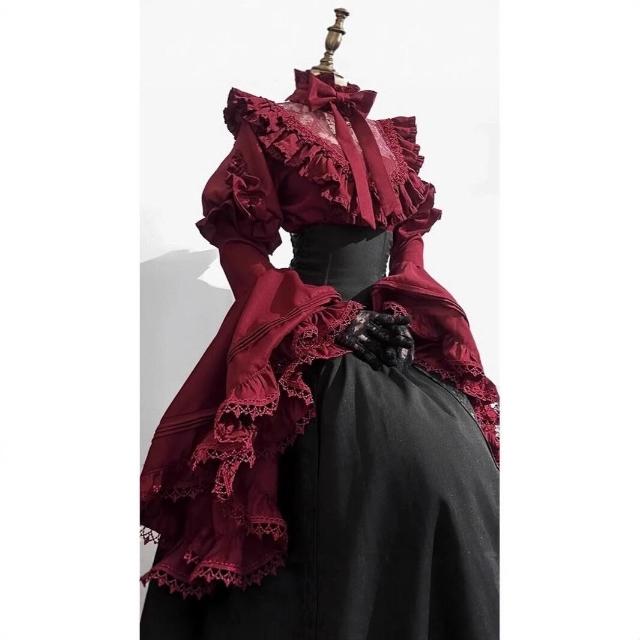 暗黑哥特風lolita襯衫魚骨半身裙姬袖套裝洛麗塔優雅華麗兩件套女