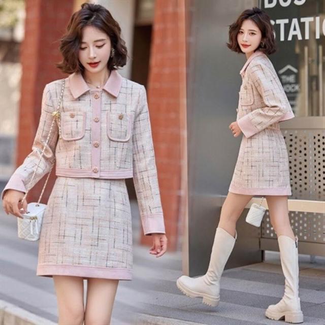 粉色小香風套裝裙女2025春秋新款高級感小個子減齡半身裙兩件套潮