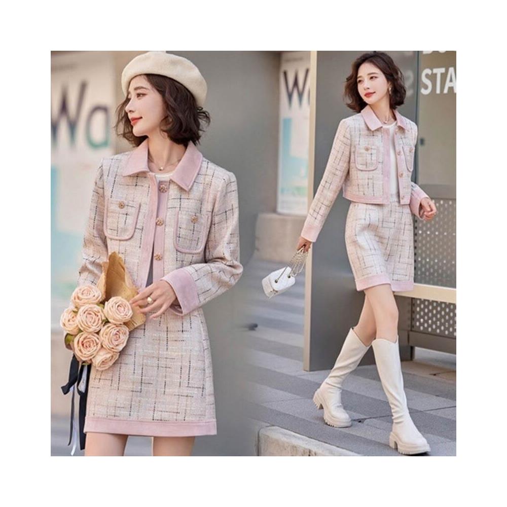 粉色小香風套裝裙女2025春秋新款高級感小個子減齡半身裙兩件套潮