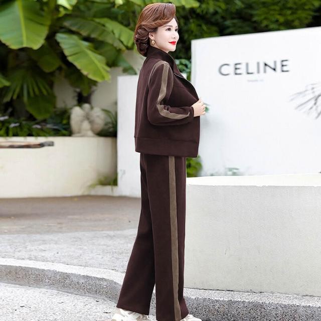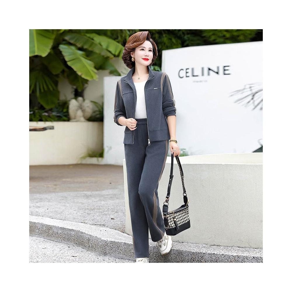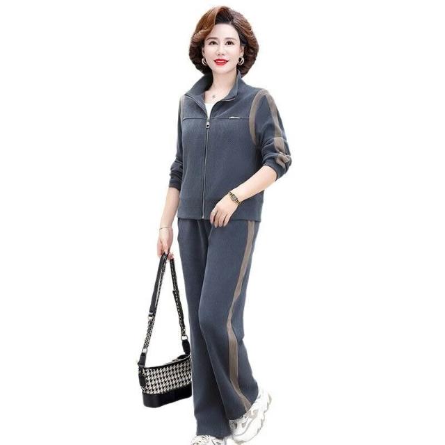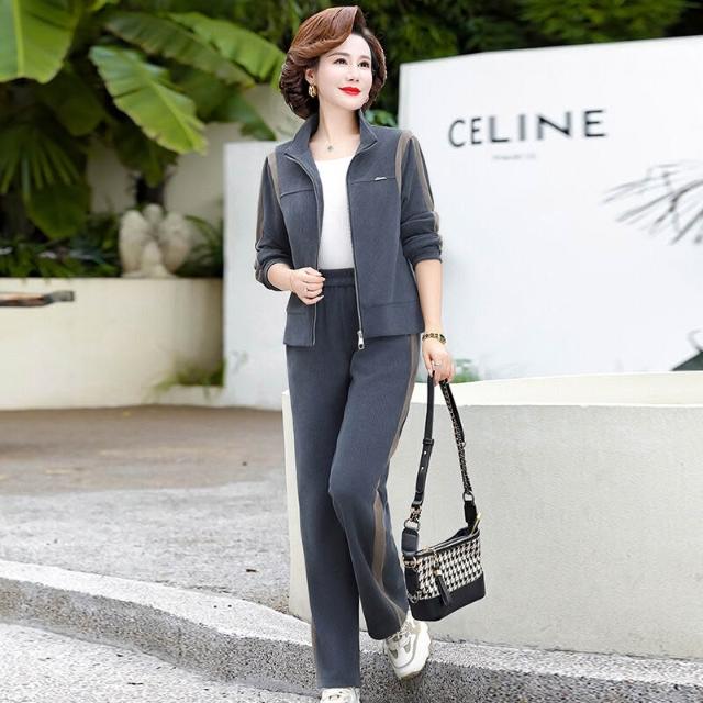 媽媽裝春秋款運動服套裝時尚中年秋裝外套女新款中老年長袖兩件套