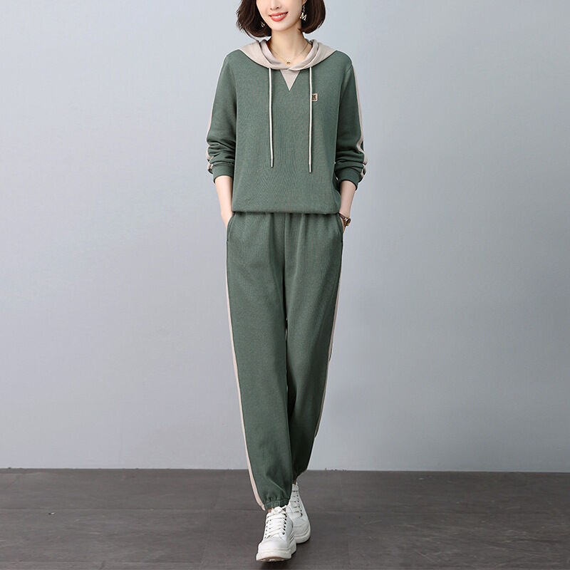 女士洋氣套裝 中年運動套裝 媽媽寬松套裝 大碼秋裝 搭配一整 休閑兩件套