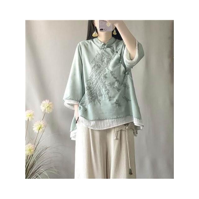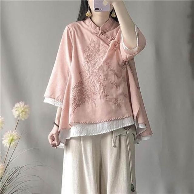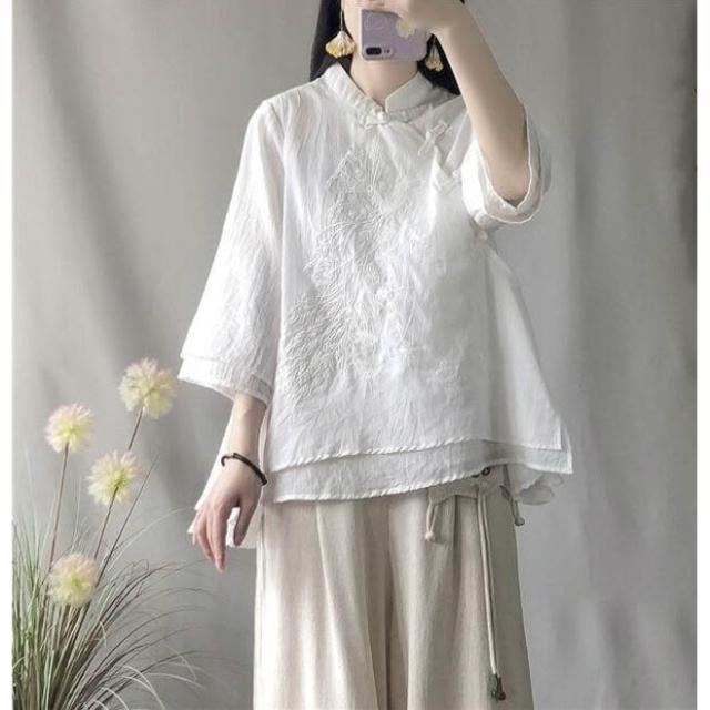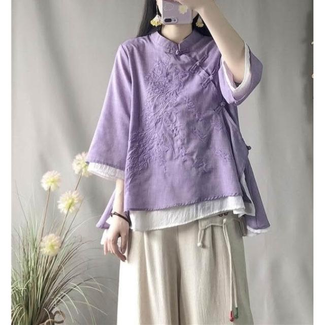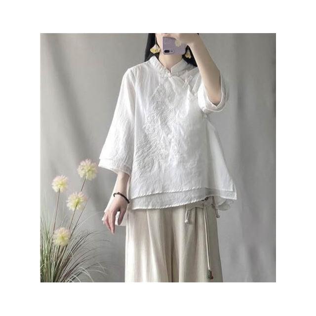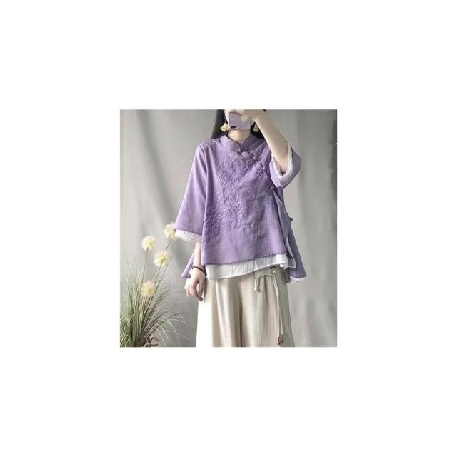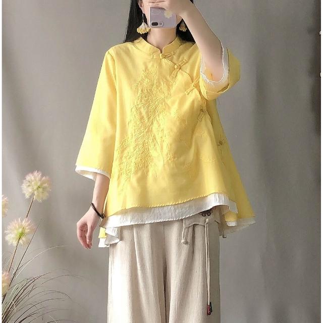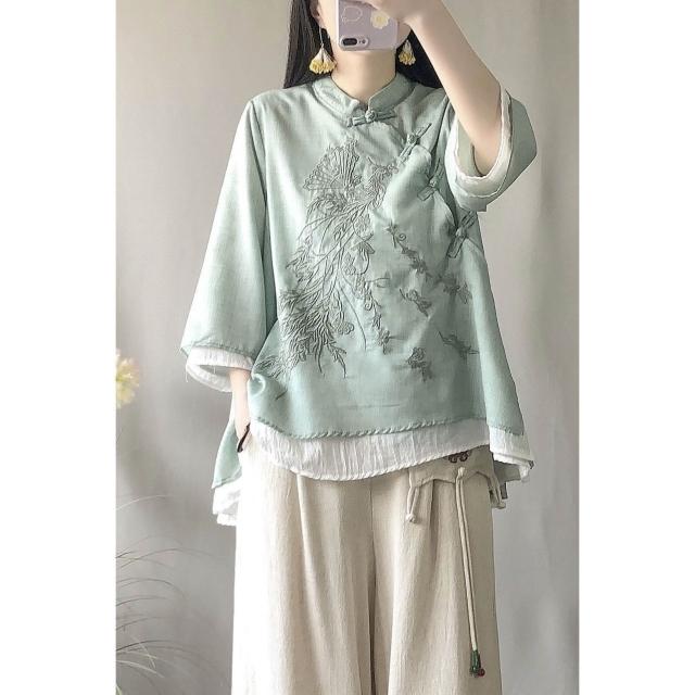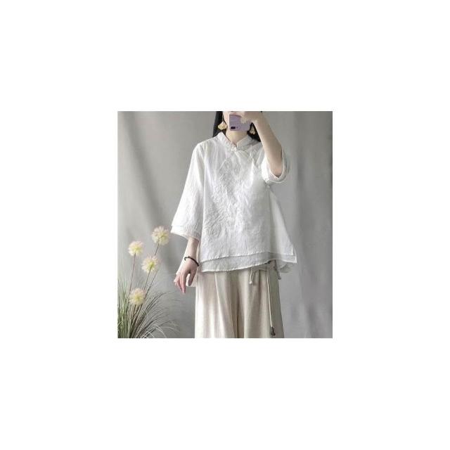 襯衫 中國風斜襟襯衫 盤扣襯衫 春夏季寬松棉麻襯衫 改服 禅意茶服女裝