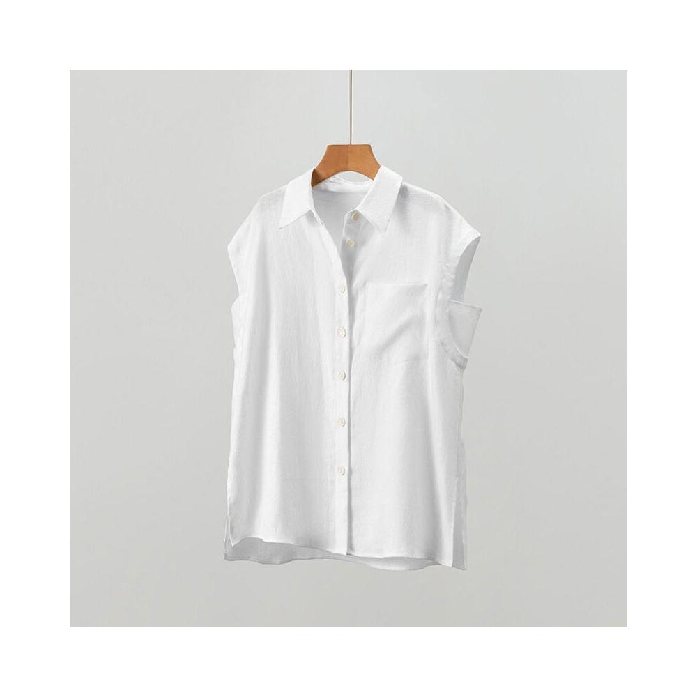 夏季新款無袖白色亞麻襯衫女老錢風坎肩上衣通勤薄款麻料襯衣