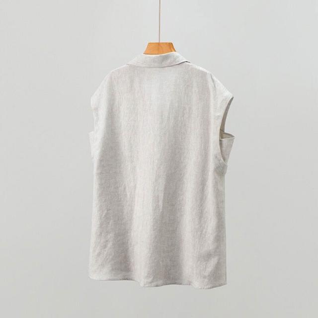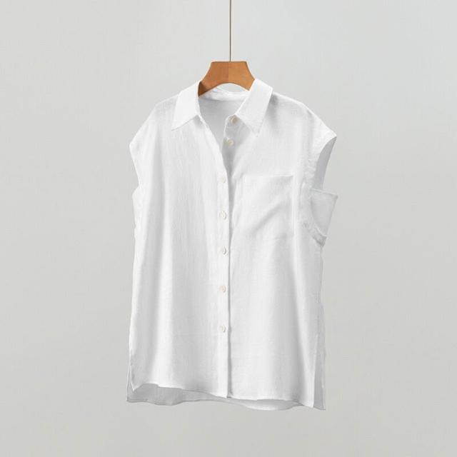 夏季新款無袖白色亞麻襯衫女老錢風坎肩上衣通勤薄款麻料襯衣