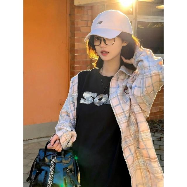 長袖粉色格子襯衫女款2025新款美式早秋感巨好看上衣外套