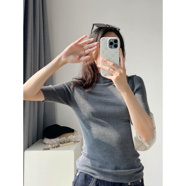 25早秋100%羊毛揚子紗無縫系列立領款5分袖設計7色羊毛打底衫2560