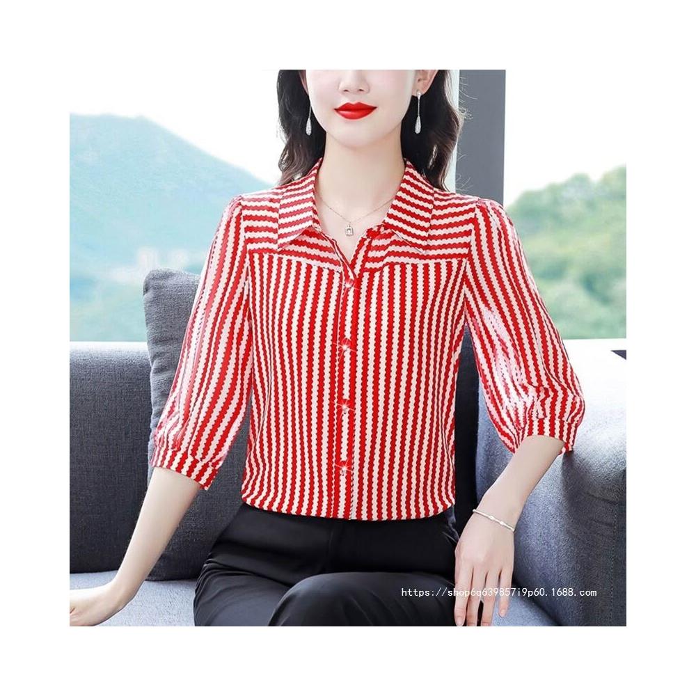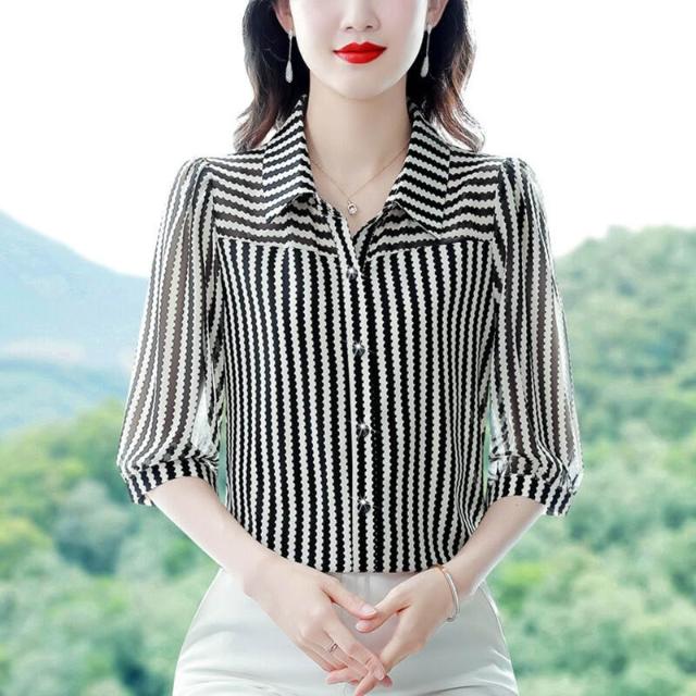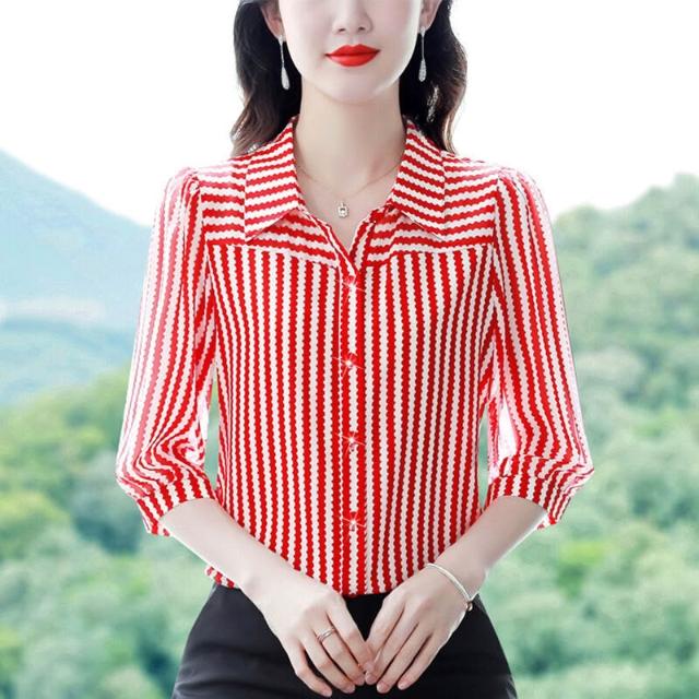 中年女裝條紋襯衫女2025早秋新款流行洋氣小衫減齡時尚漂亮上衣