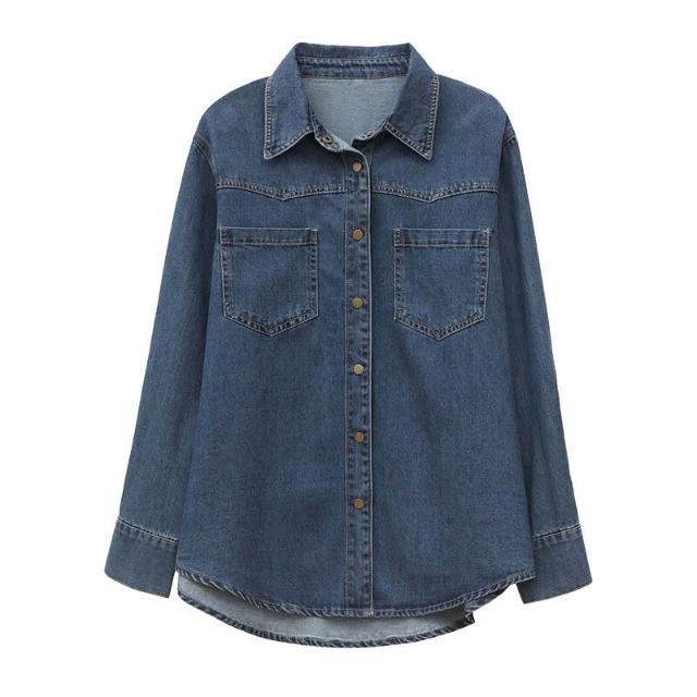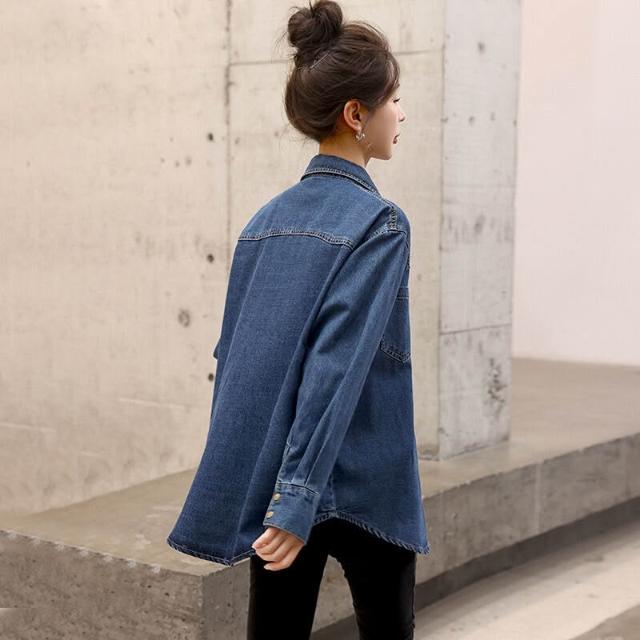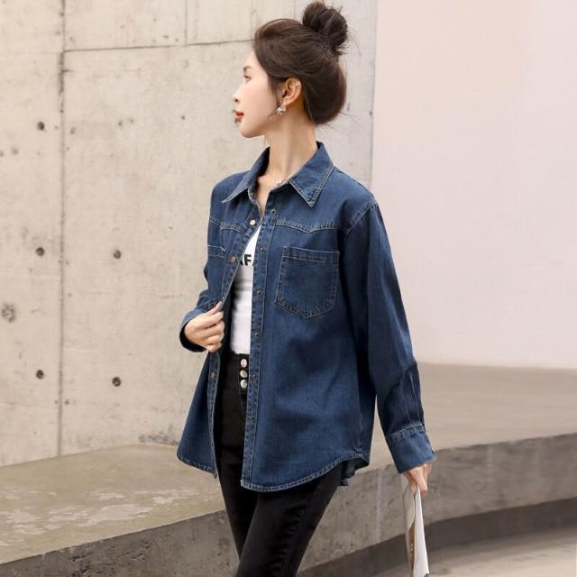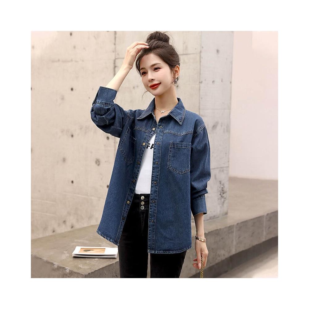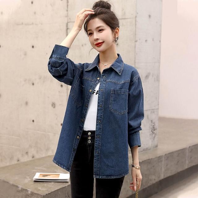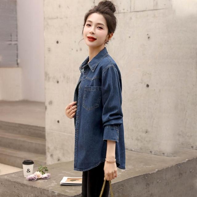 藍色牛仔襯衫外套女2025春秋新款小個子韓版寬松休閑疊穿上衣