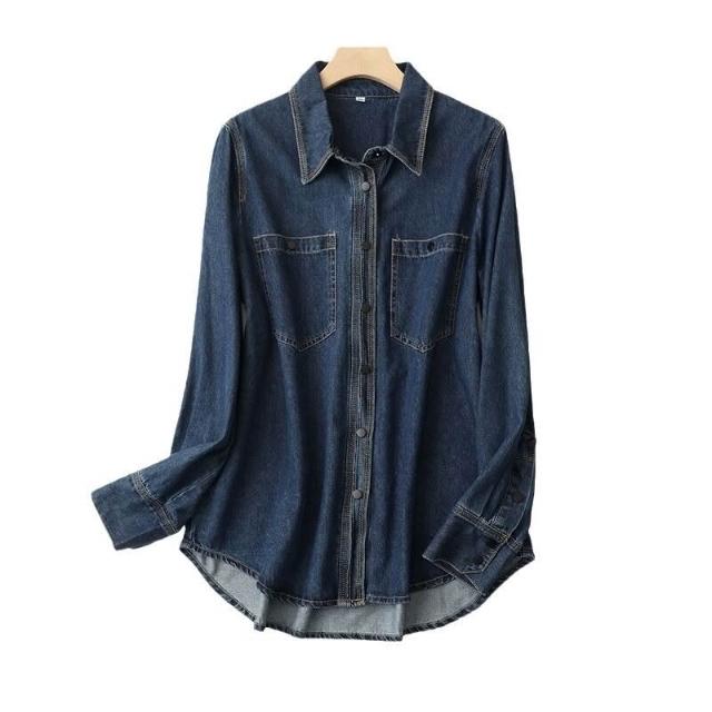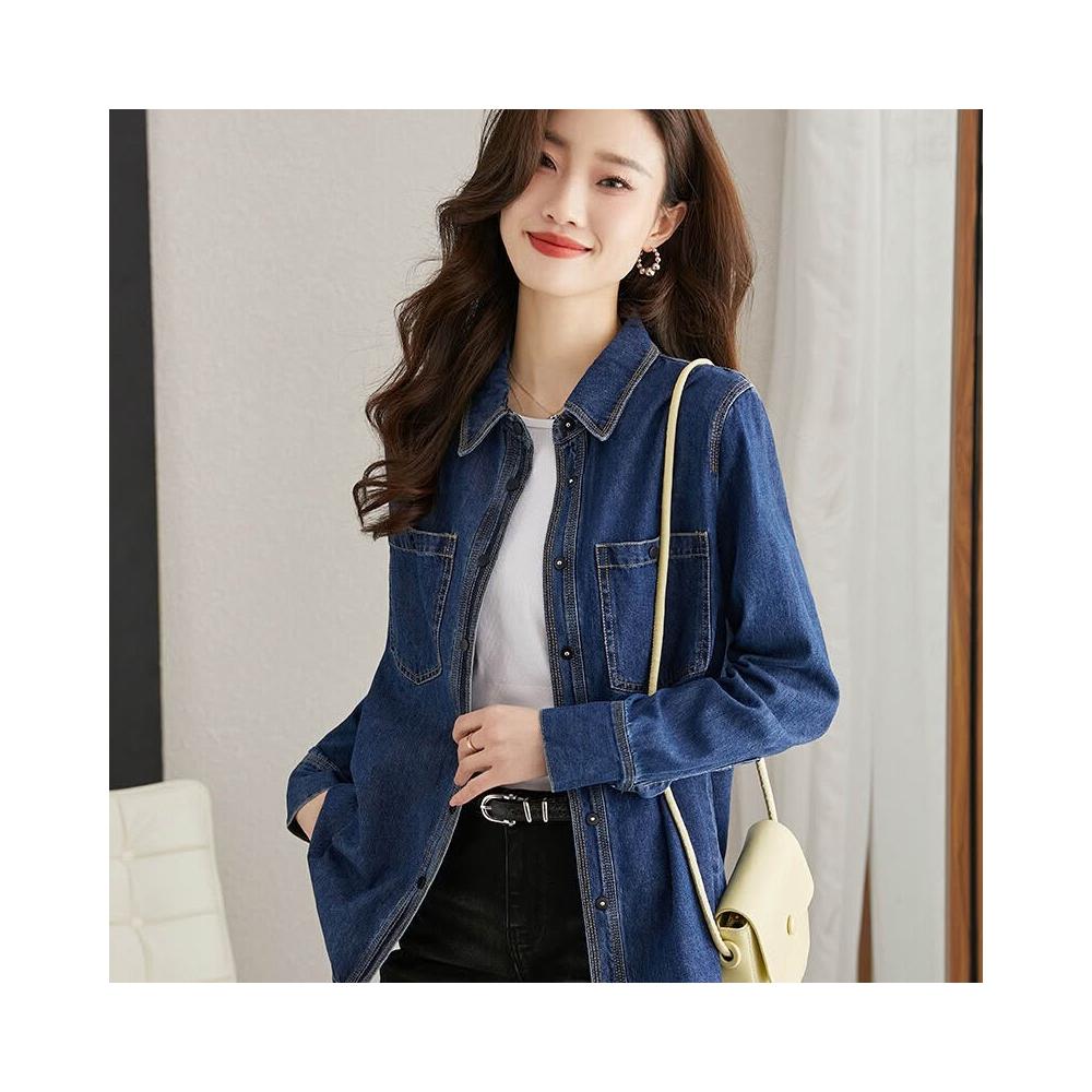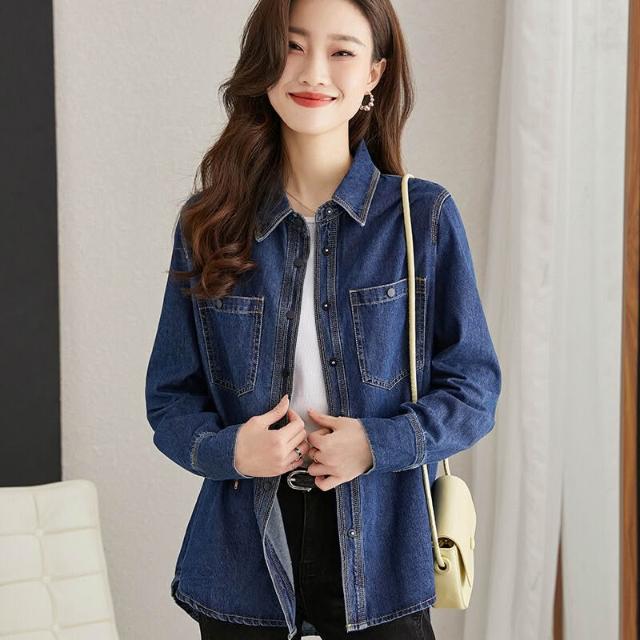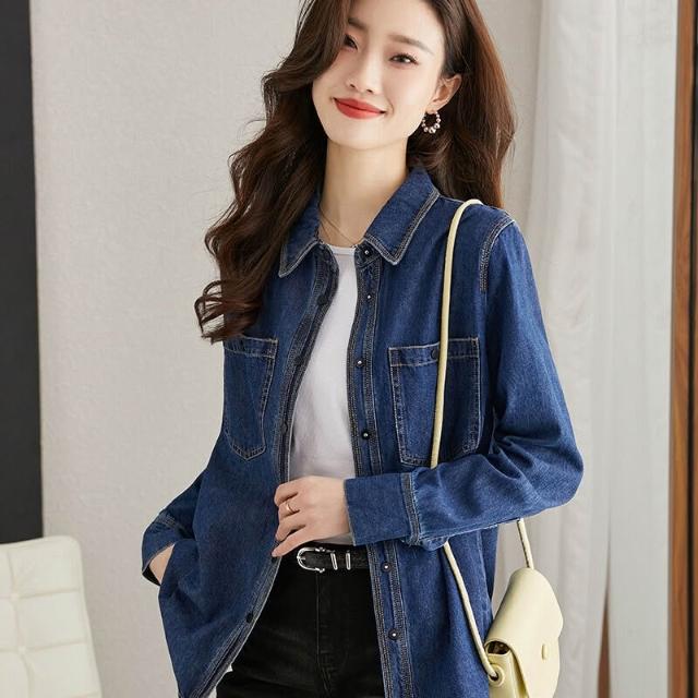 2024秋裝洋氣新款時尚牛仔上衣減齡寬松金屬扣設計感襯衫外套女士
