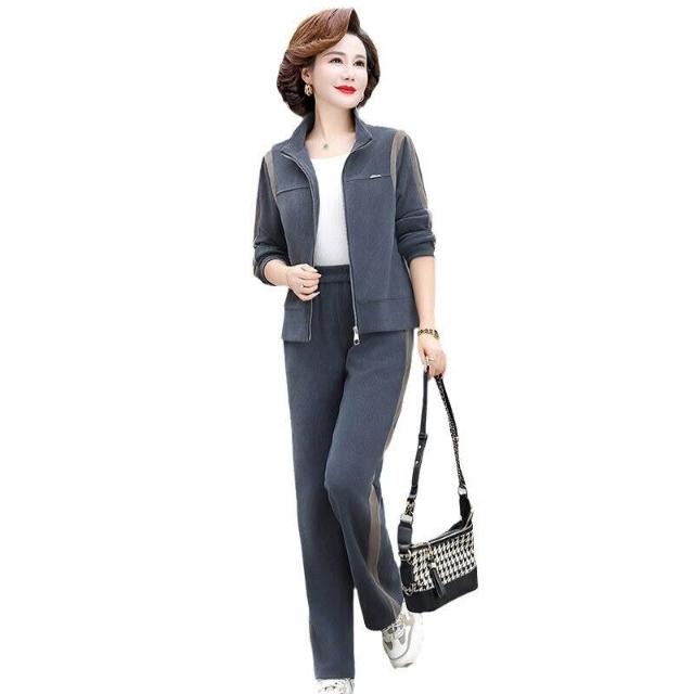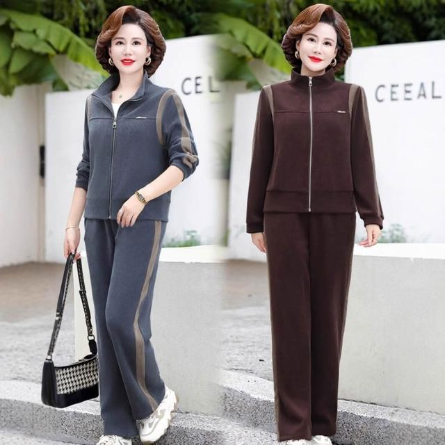 媽媽秋裝套裝洋氣中年女裝休閑時尚運動服中老年女秋冬大碼兩件套
