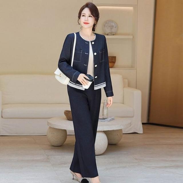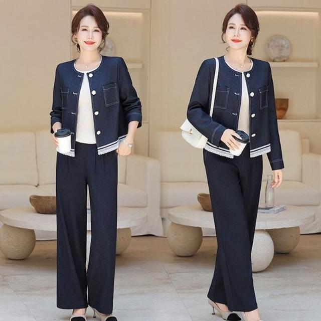 中年媽媽秋裝套裝小香風外套上衣中老年女裝時尚減齡兩件套春秋款