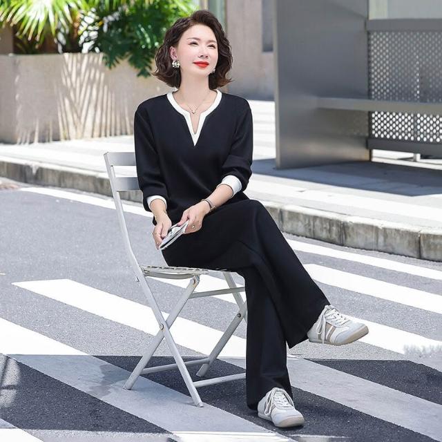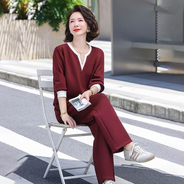 時尚休閑運動媽媽套裝2025秋季新款洋氣顯瘦減齡中老年女裝兩件套