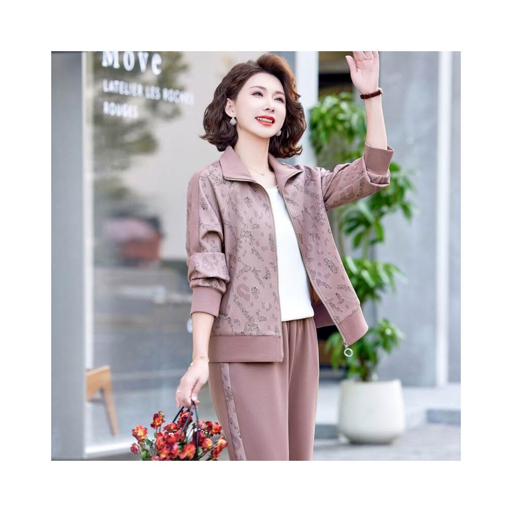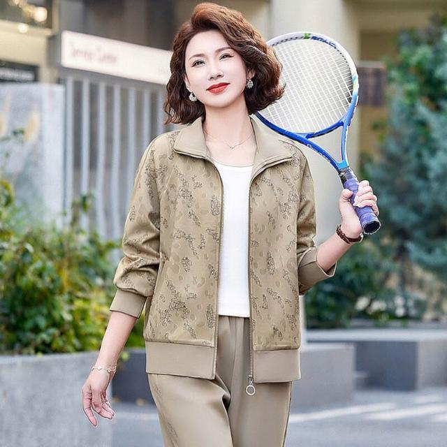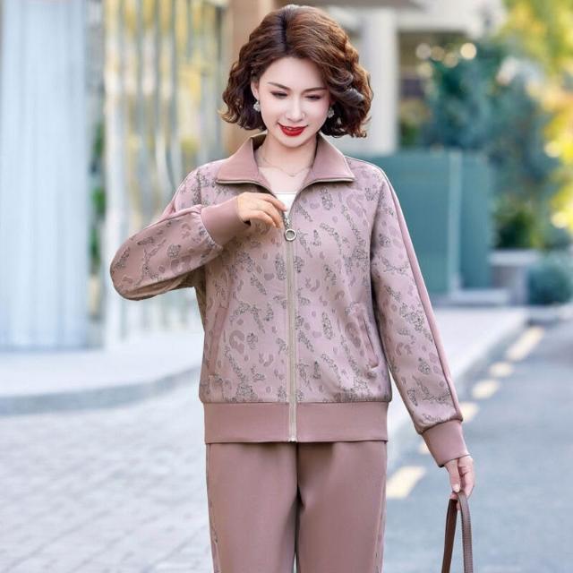 中年媽媽春裝運動服套裝休閑上衣外套2025新款中老年女裝春秋減齡