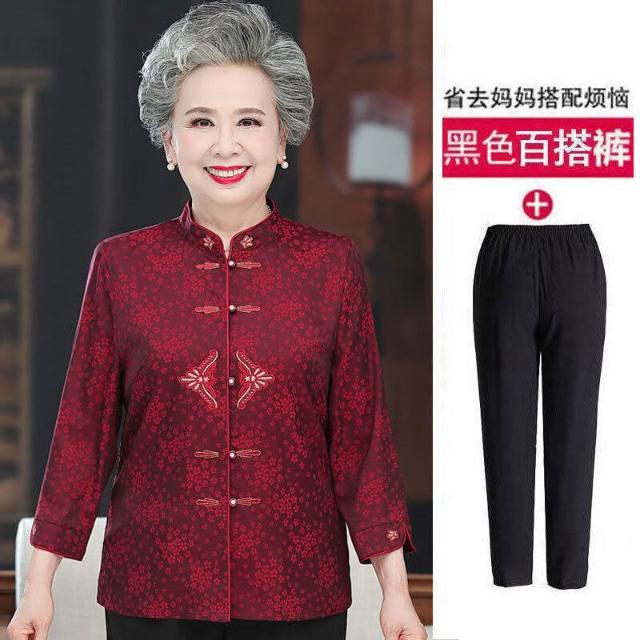 婚禮奶奶夏裝襯衫喜慶上衣老年人媽媽夏季襯衣套裝喜婆婆婚宴衣服