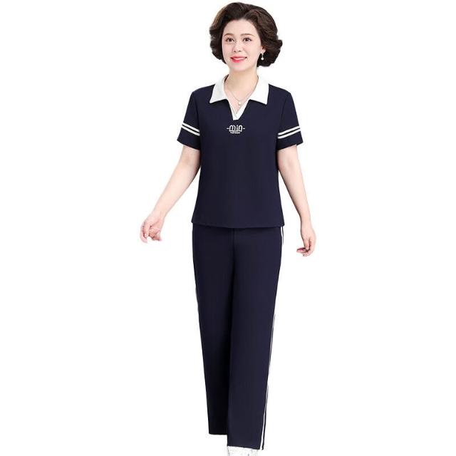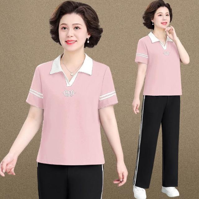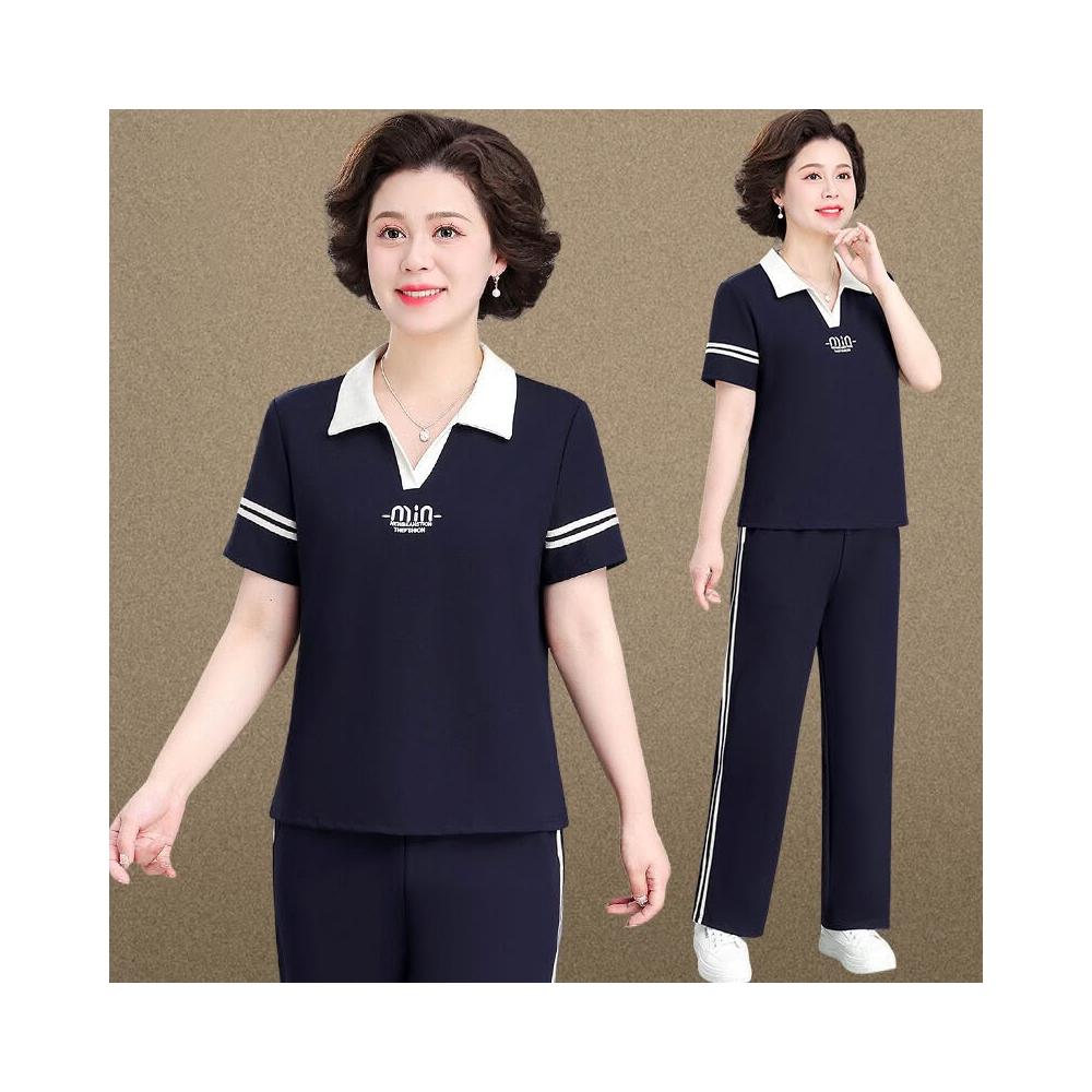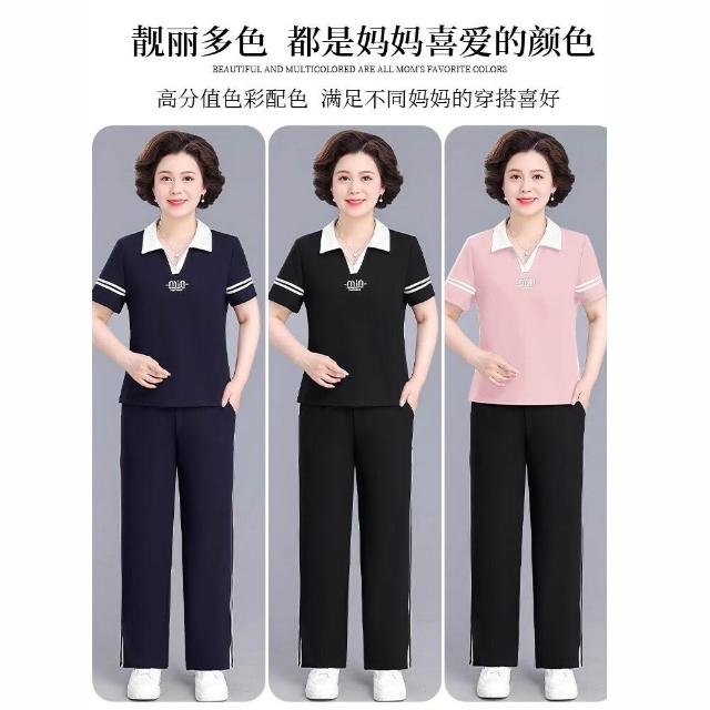 媽媽運動服套裝女夏季2025新款中老年夏裝短袖T恤衫休閑大碼上衣