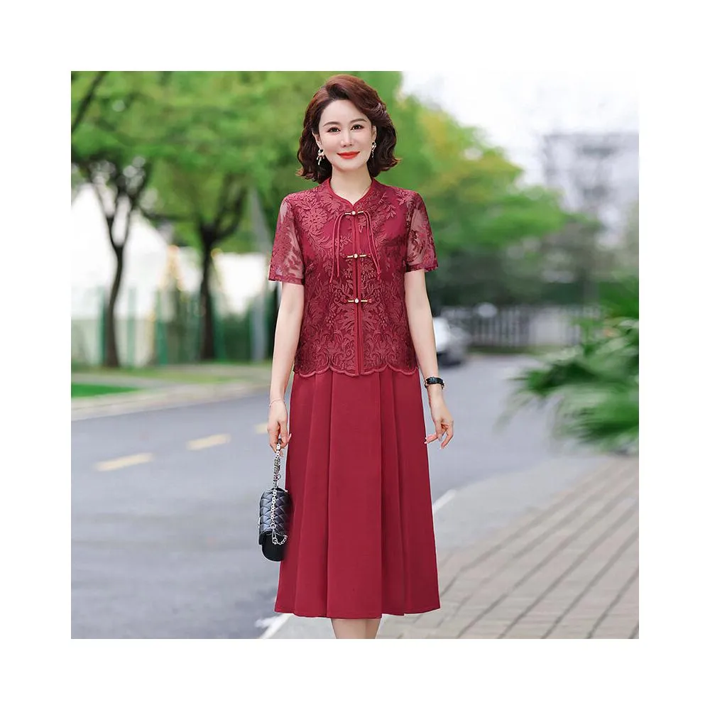 胖媽媽婚宴裝平時可穿連衣裙兩件套洋氣大碼中老年喜婆婆結婚禮服
