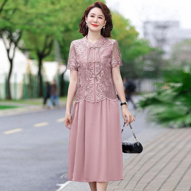 胖媽媽婚宴裝平時可穿連衣裙兩件套洋氣大碼中老年喜婆婆結婚禮服