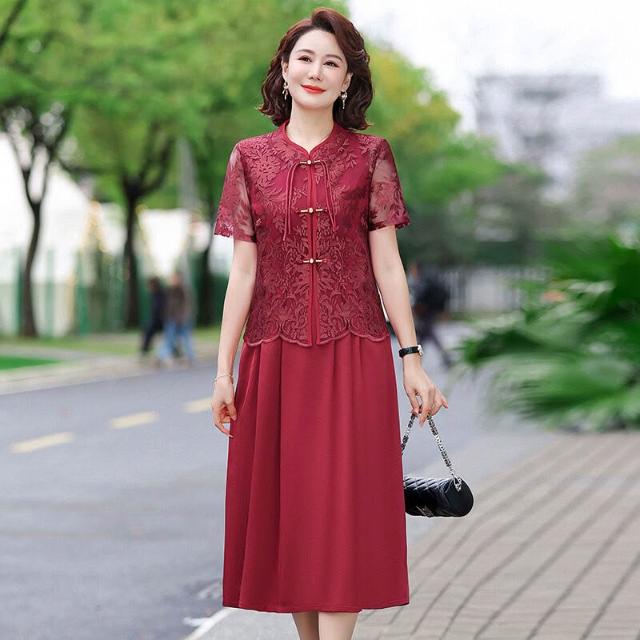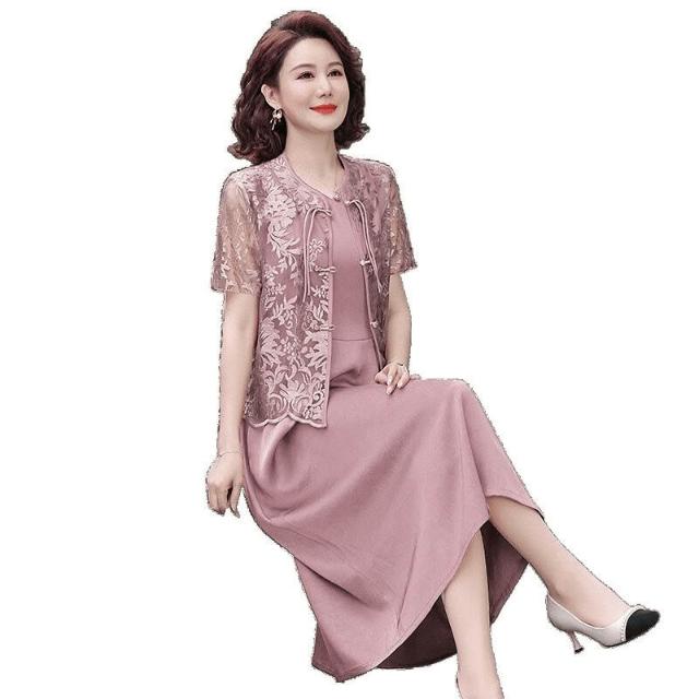 胖媽媽婚宴裝平時可穿連衣裙兩件套洋氣大碼中老年喜婆婆結婚禮服