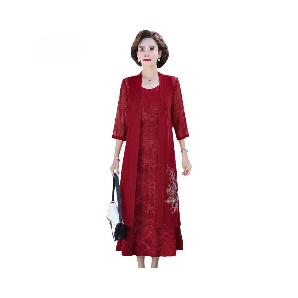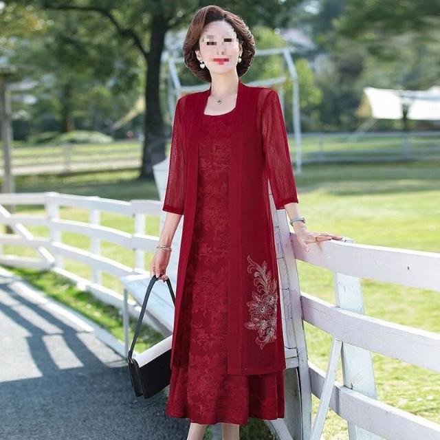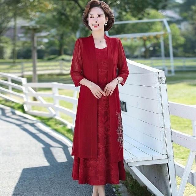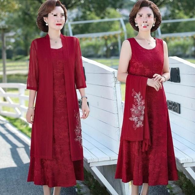 喜婆婆春夏中老年婚宴兩件套連衣裙新款媽媽裝禮服平時可穿女