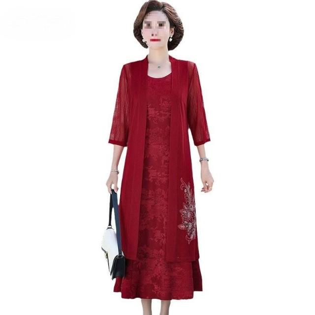 喜婆婆春夏中老年婚宴兩件套連衣裙新款媽媽裝禮服平時可穿女