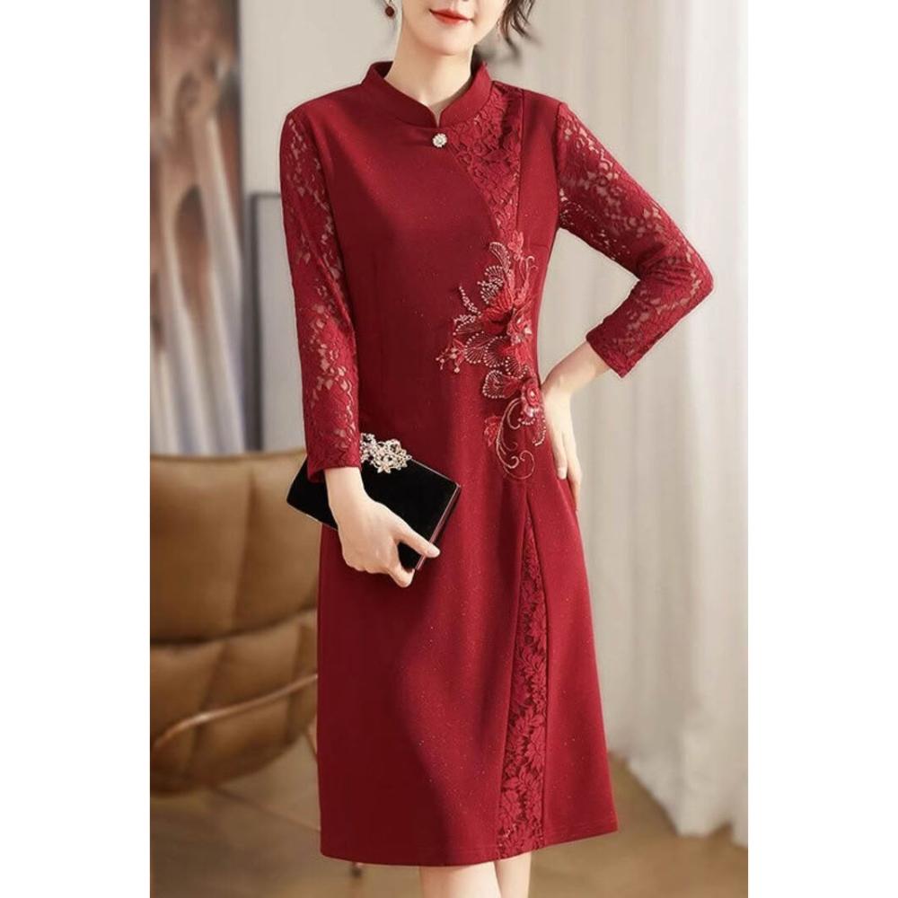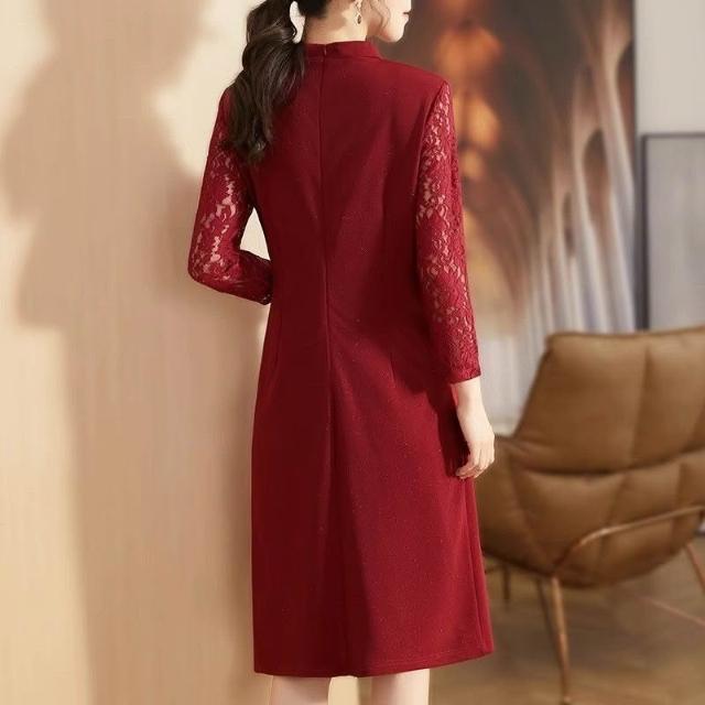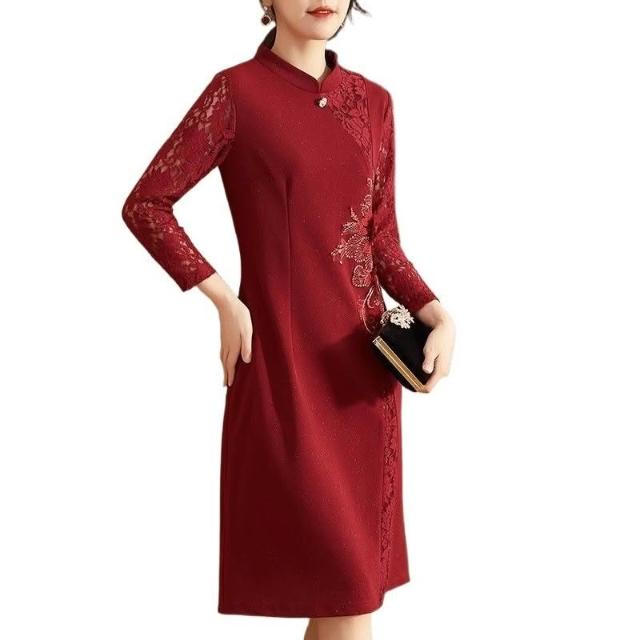媽媽春秋裝婚禮連衣裙新款中老年女高貴喜婆婆婚宴禮服裙平時可穿