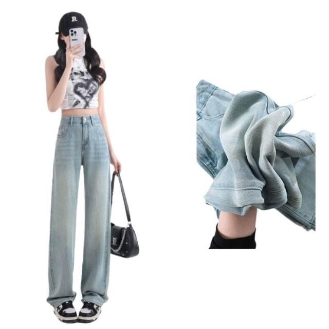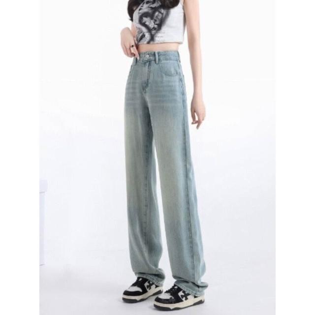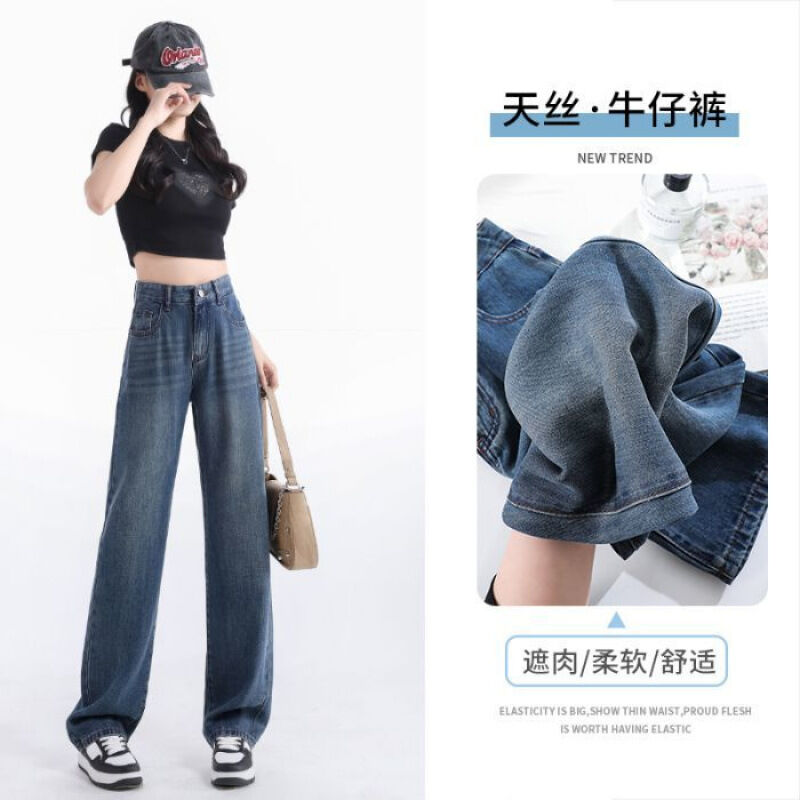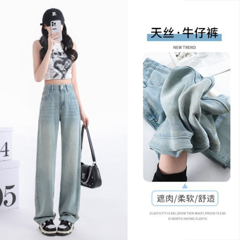 萊賽爾天絲牛仔褲2025年新款女夏季薄款冰絲涼感高腰直筒垂感闊腿