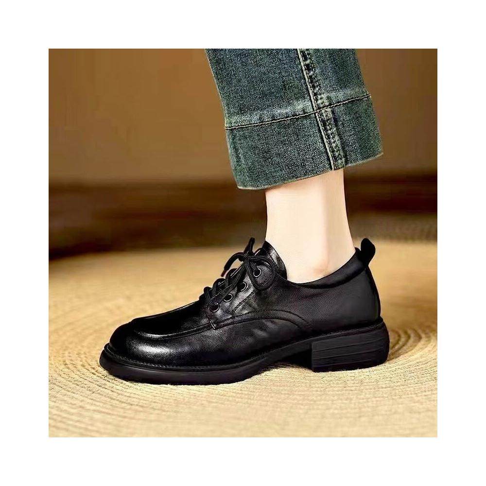 頭層牛皮圓頭系帶樂福鞋女2025秋季新款輕奢手抓紋深口單鞋小皮鞋