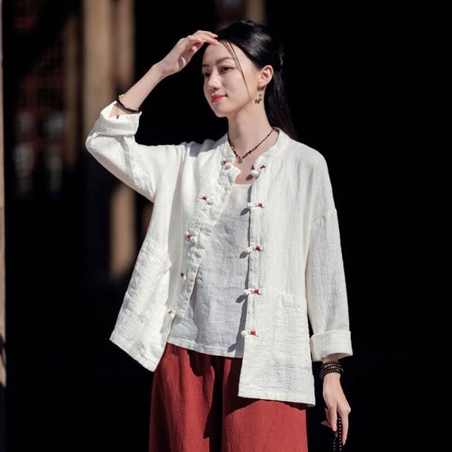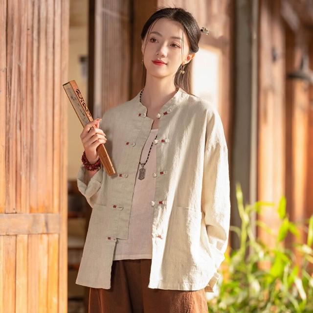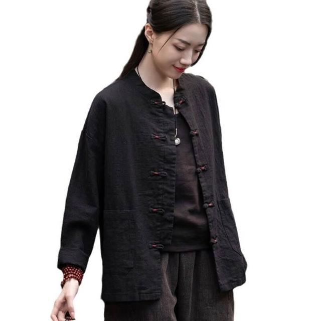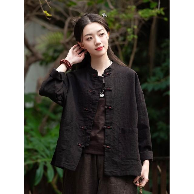 25新中式女裝立領纏線盤扣上衣開衫女式棉麻國風改良唐裝外套