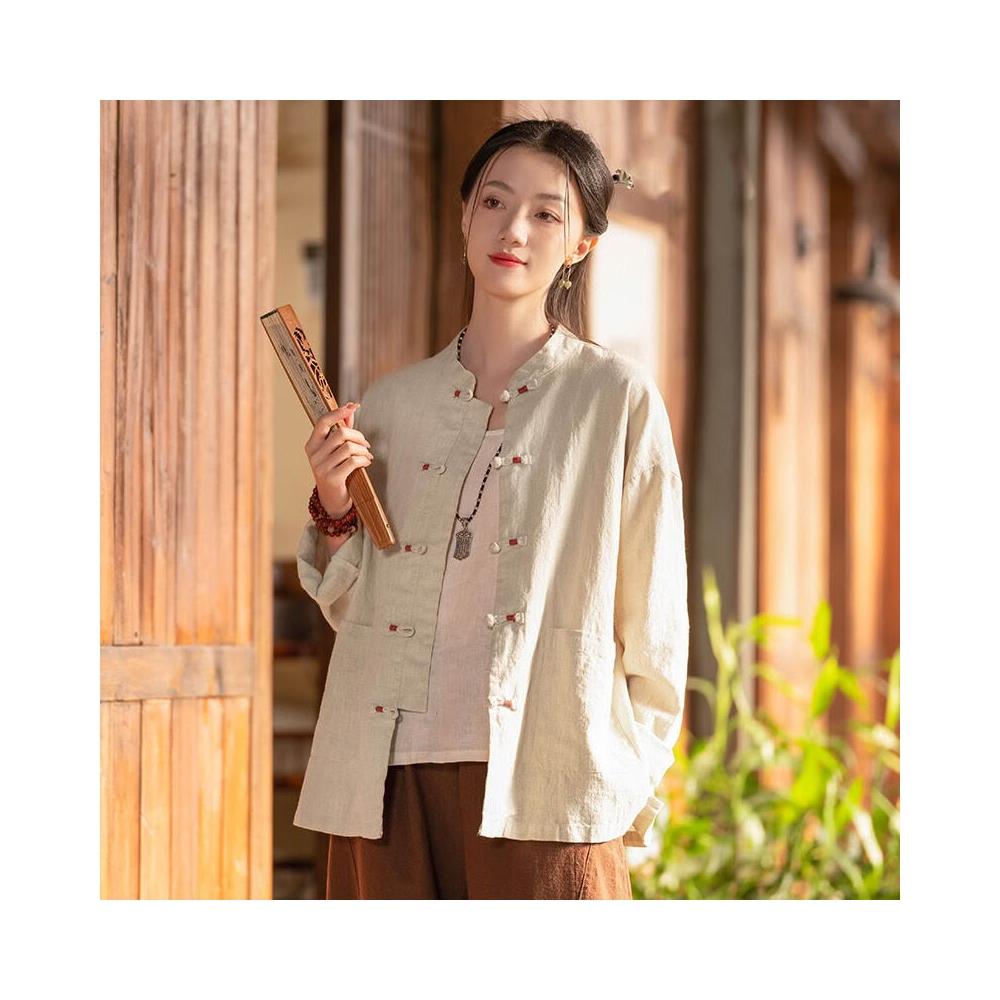 25新中式女裝立領纏線盤扣上衣開衫女式棉麻國風改良唐裝外套