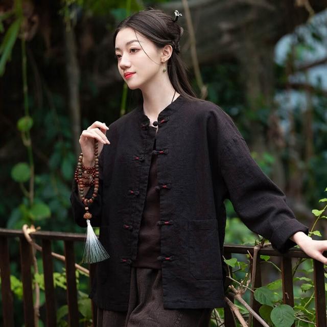 25新中式女裝立領纏線盤扣上衣開衫女式棉麻國風改良唐裝外套