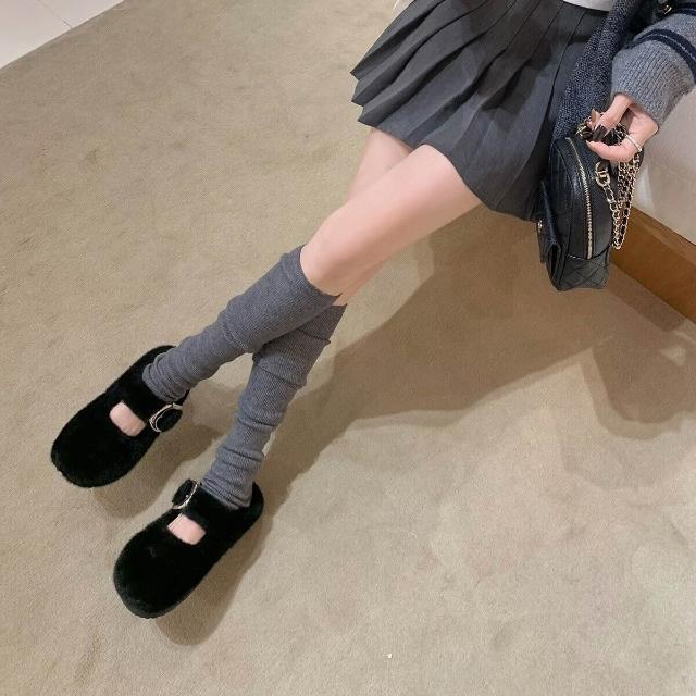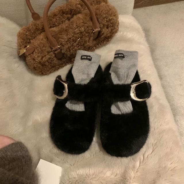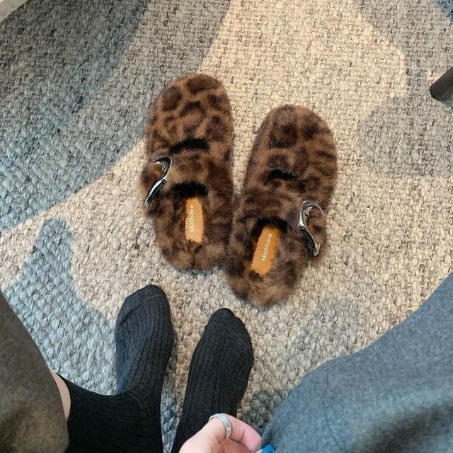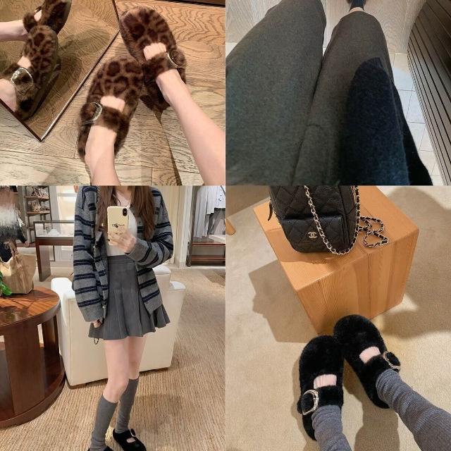 羊毛版厚底包頭半拖勃肯鞋毛茸茸圓頭扣帶保暖毛毛鞋女冬外穿