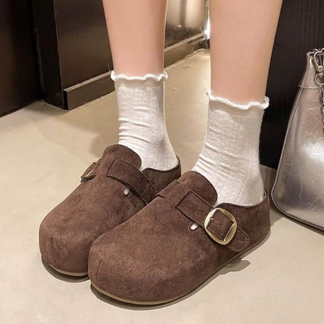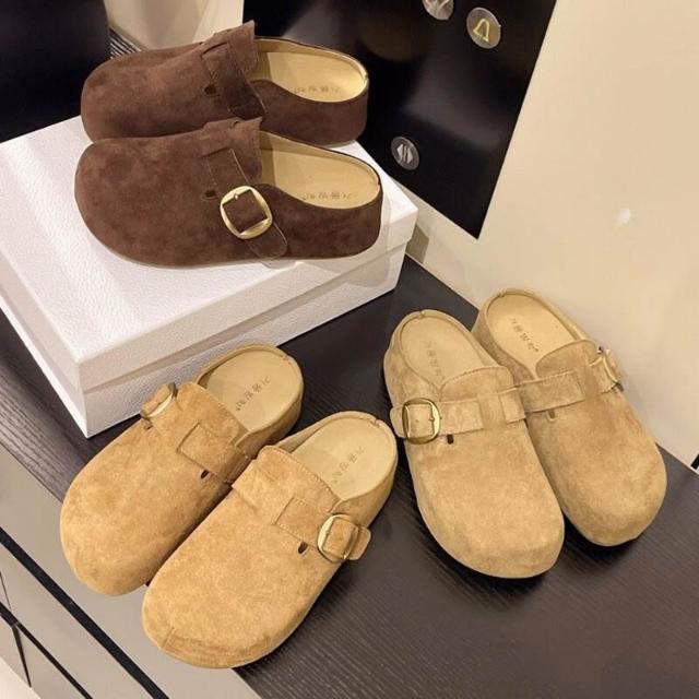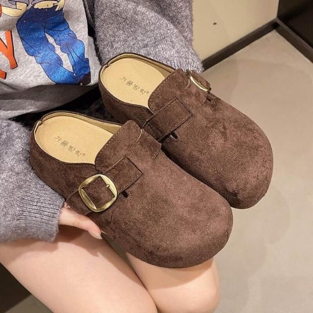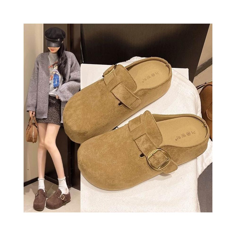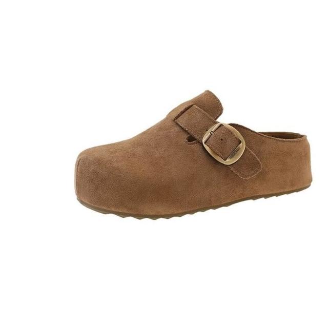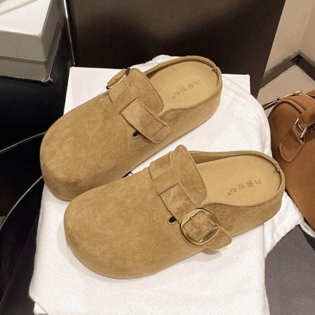 5CM厚底勃肯拖鞋2025秋冬新款外穿小個子休閑一腳蹬女拖鞋