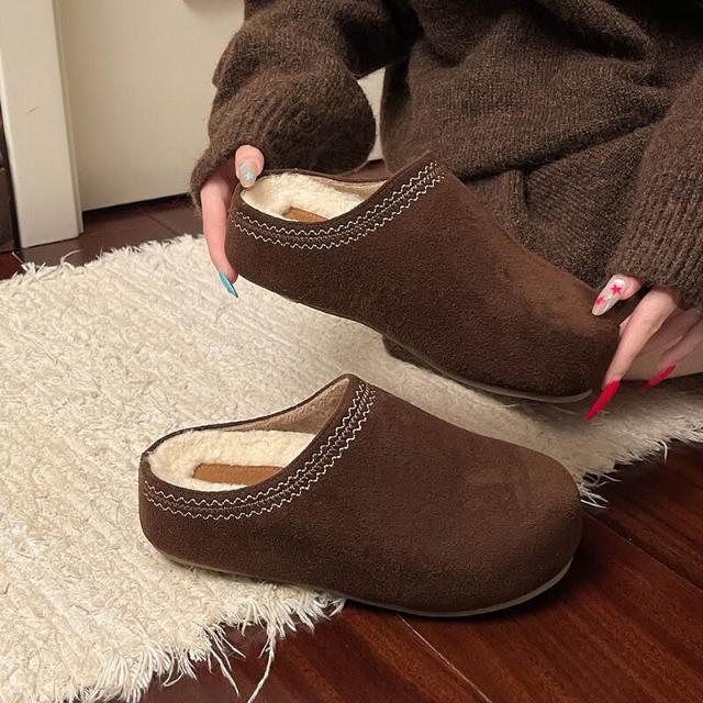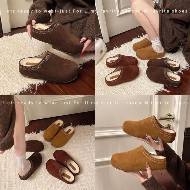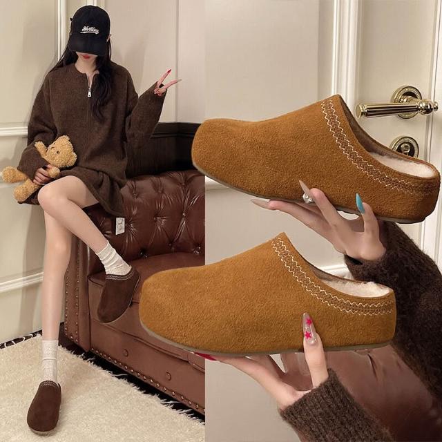 厚底內增高勃肯半拖女 2026 新款秋冬加絨棉拖 一腳蹬包頭外穿拖鞋 女士保暖勃肯鞋 加絨厚底包頭半拖 秋冬外穿增高棉拖