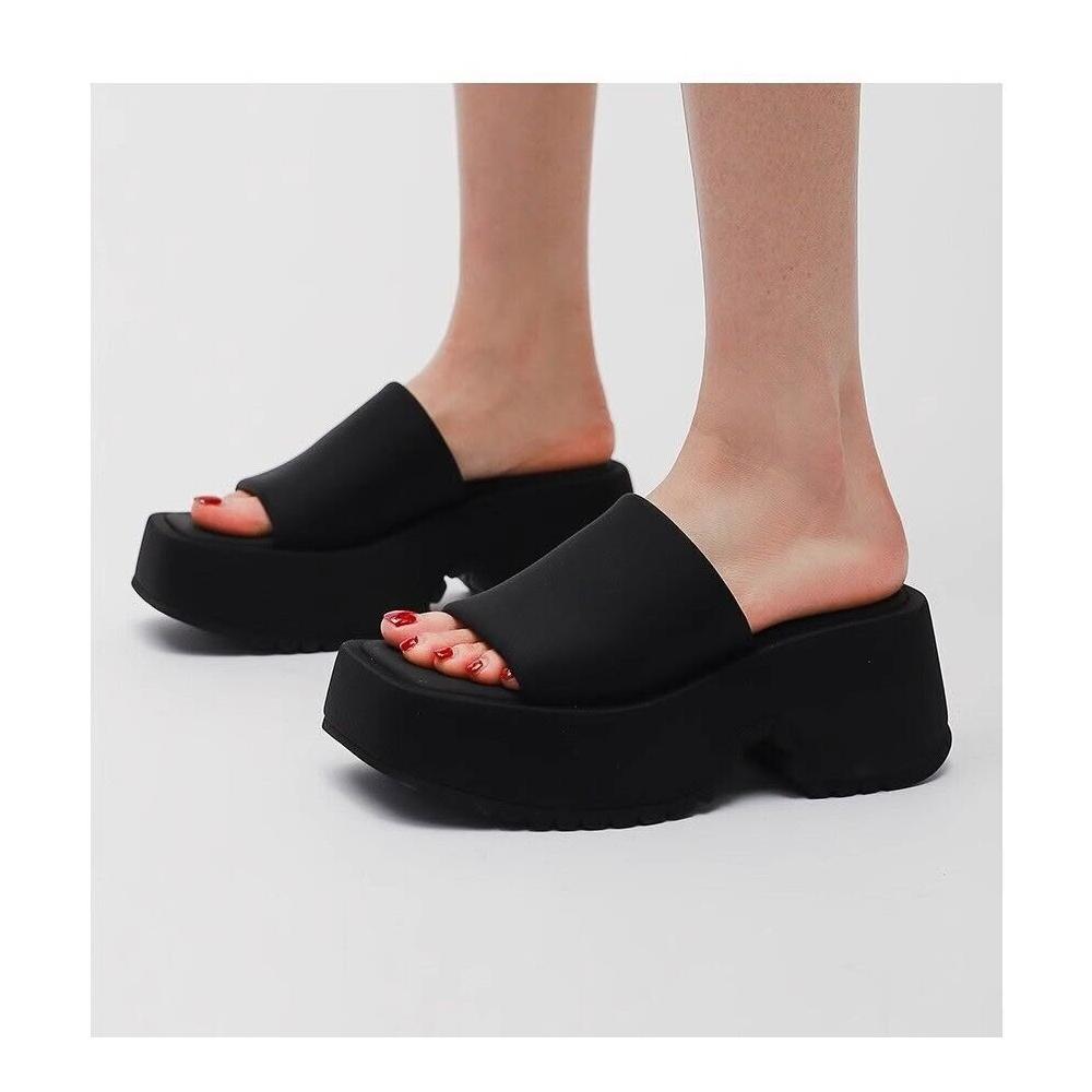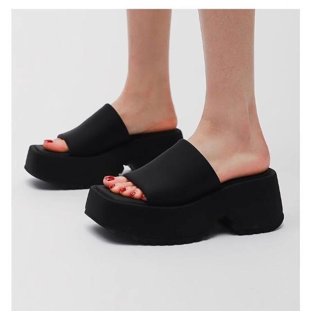 趙露思同款~厚底拖鞋女2025年夏季新款黑色增高小個子涼拖鞋外穿