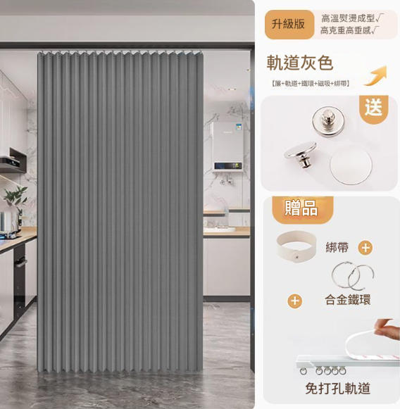 廚房專用防油煙免打孔門簾 開放式餐廳臥室隔斷遮擋簾 家用可折疊防塵分區簾 免安裝直發隔斷遮擋門簾 餐廳廚房兩用折疊隔斷簾