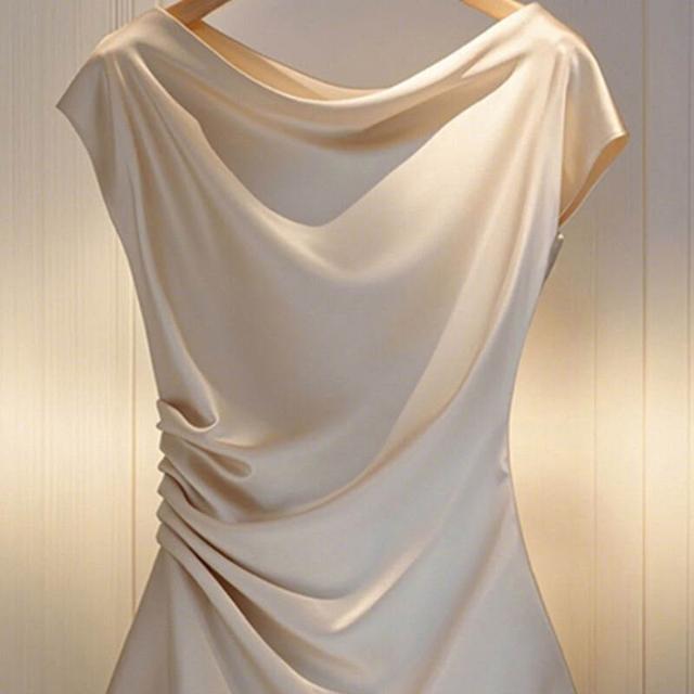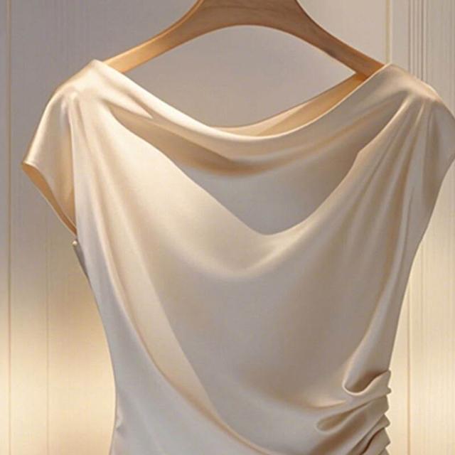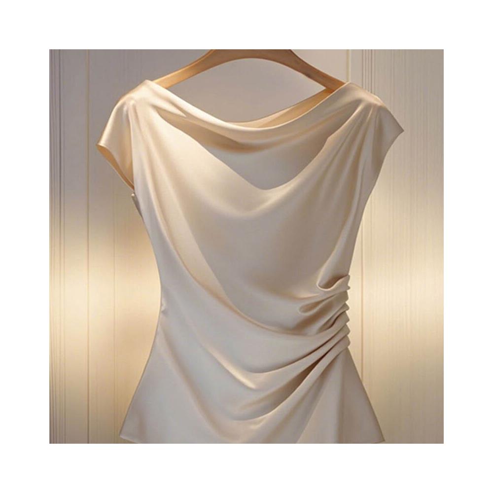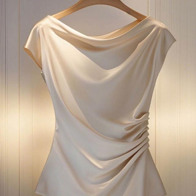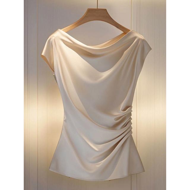 法式超好看一字肩真絲杏色襯衫女夏季桑蠶絲短袖T恤收腰顯瘦小衫