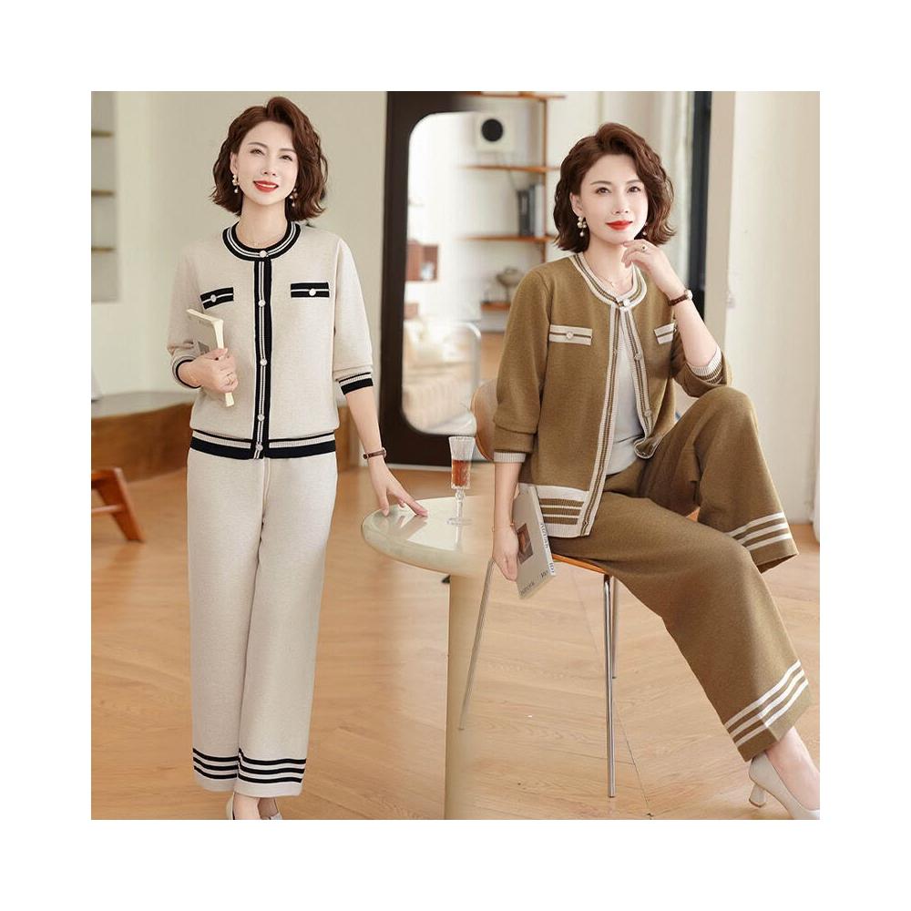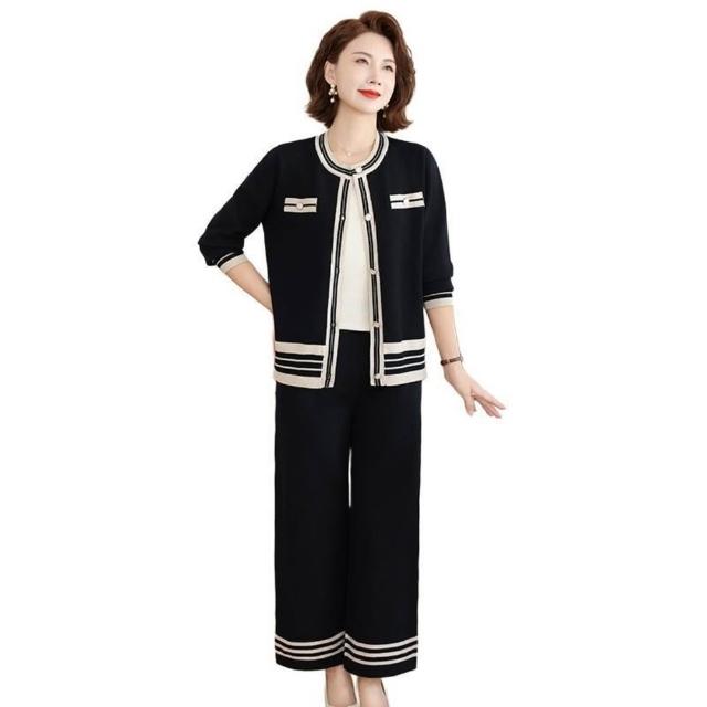 媽媽秋裝針織套裝中年女洋氣小香風外套中老年女裝春秋新款兩件套