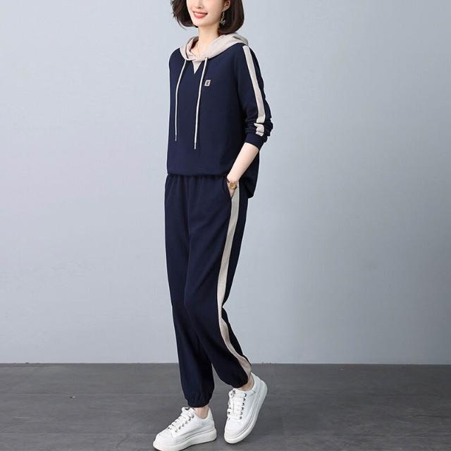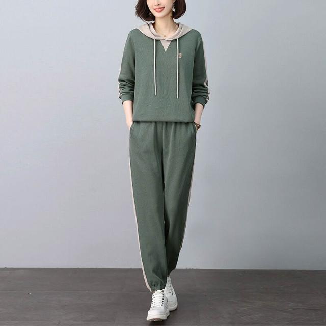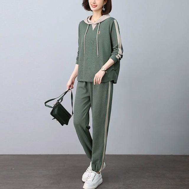 女士洋氣衛衣中年運動套裝褲媽媽寬松大碼秋裝搭配一整休閑兩件套