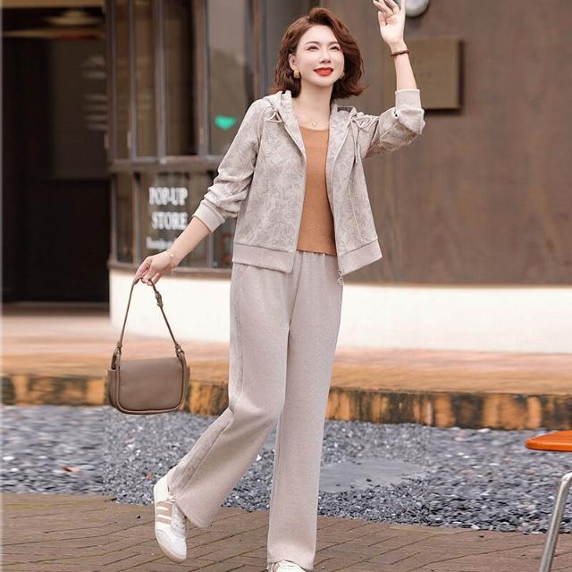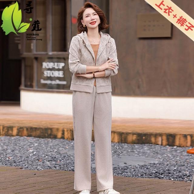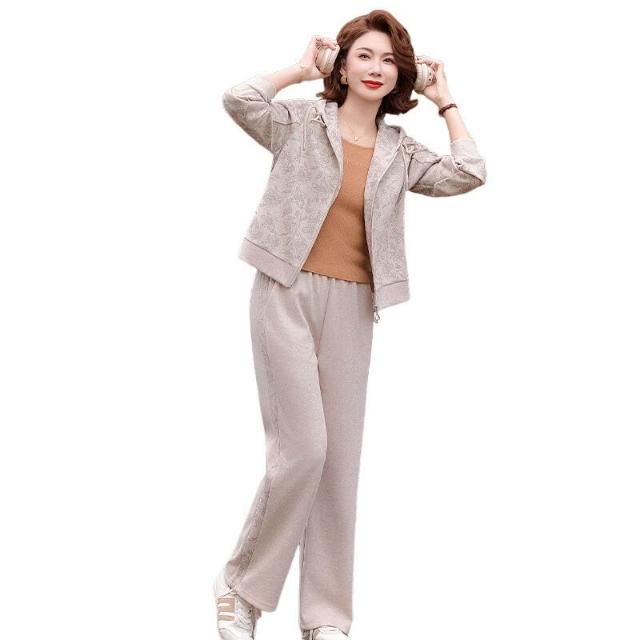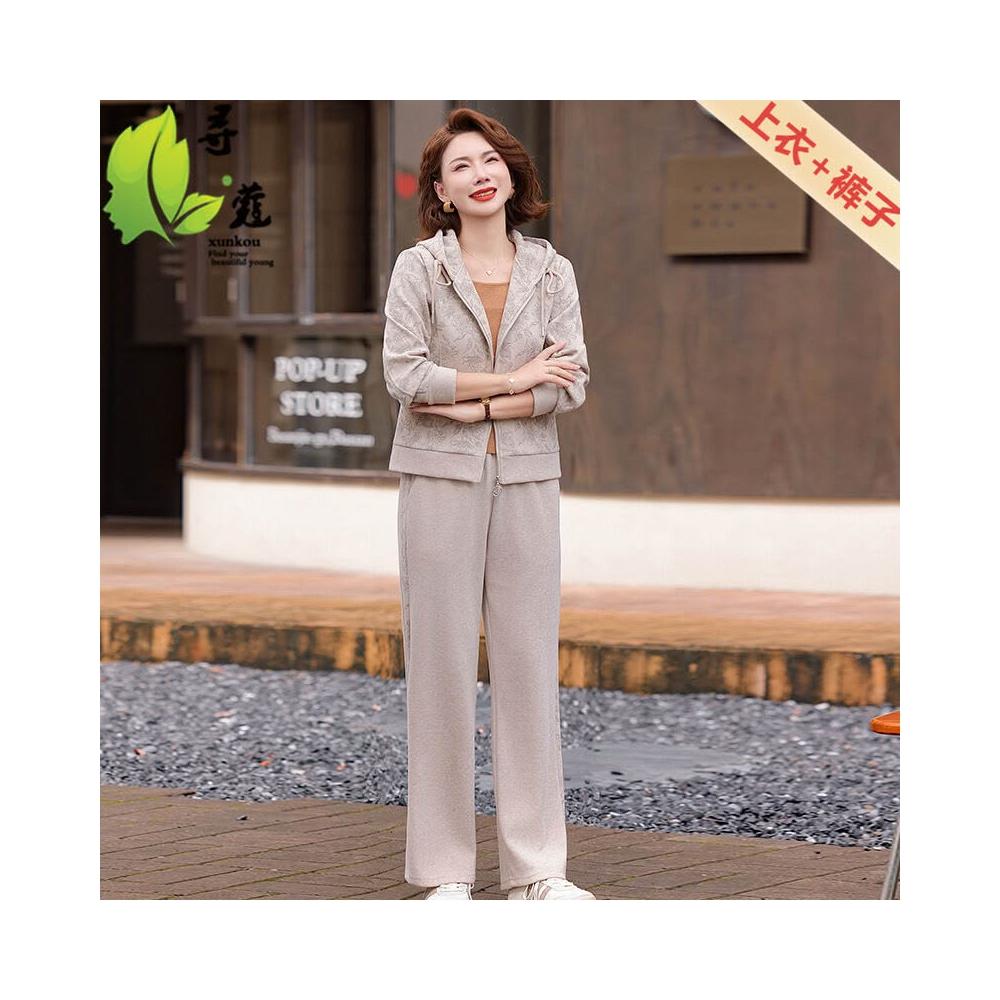 連帽媽媽裝中老年秋季套裝長袖長褲中年裝大碼媽媽裝運動服兩件套