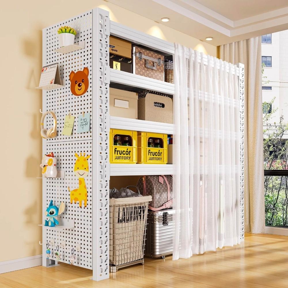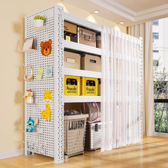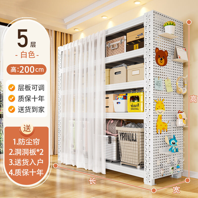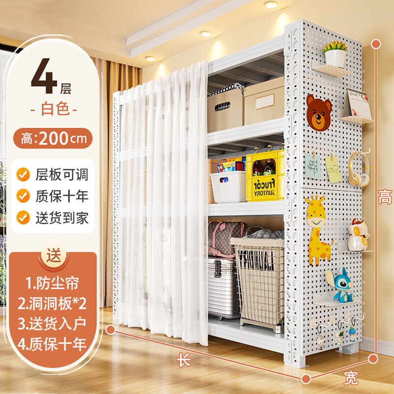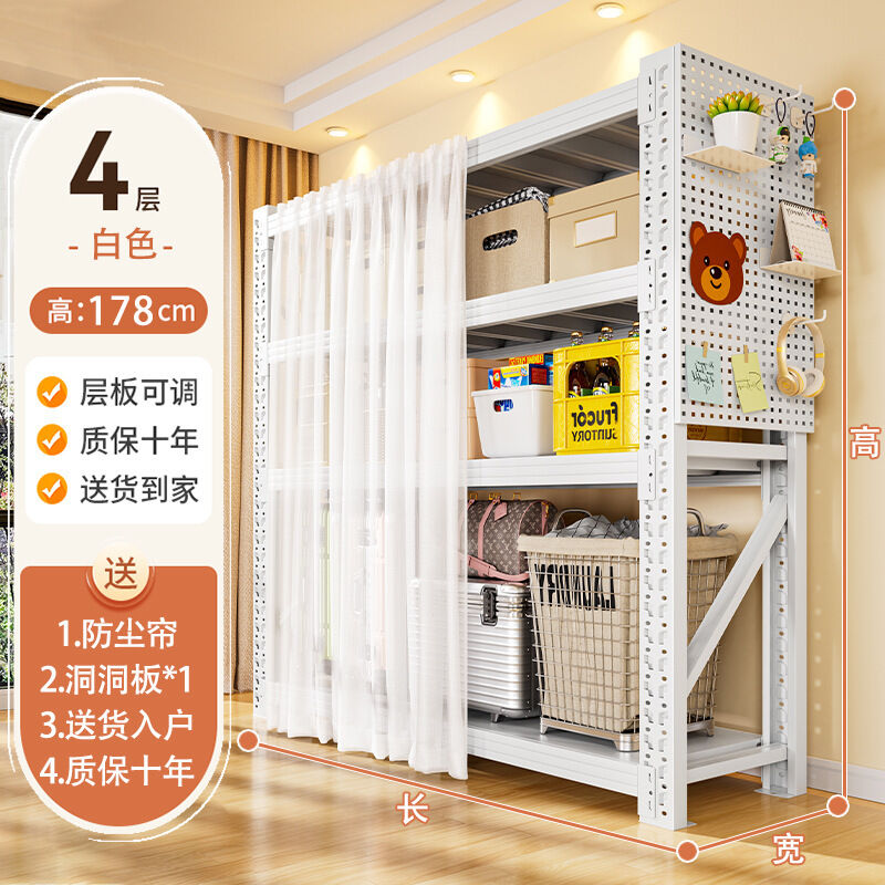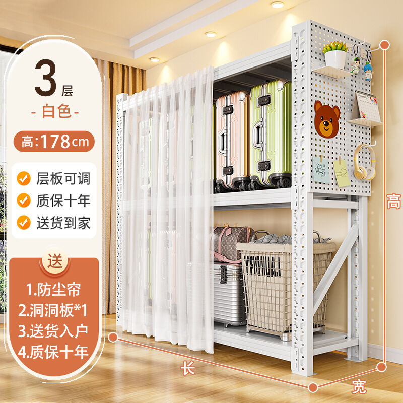 帶防塵簾貨架置物架多層家用行李箱落地客廳收納架陽臺儲物鐵架子