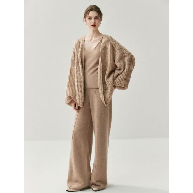 山羊絨寬松顯瘦2025秋冬加厚羊絨褲女直筒褲羊毛褲垂感針織闊腿褲