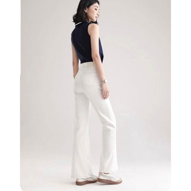 微喇褲 白色牛仔褲 微喇牛仔褲 女新款牛仔褲 高腰寬松褲子 顯瘦不貼腿牛仔褲 闊腿喇叭褲